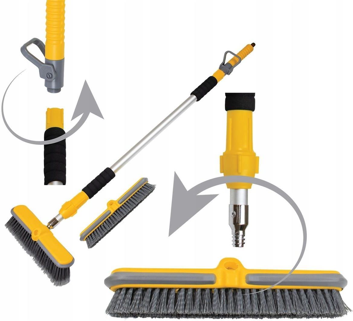 Greenmill Aquasystem Zestaw 2 szczotek GB2692 Komplet dwóch szczotek ogrodowych oraz przepływowego trzonka. Do podłączenia do kranu ogrodowego za pomocą węża ogrodowego zakończonego szybkozłączkami (wąż i szybkozłączka niezałączona). Zestaw zawiera dwie łatwo wymienne szczotki przepływowe: do mycia powierzchni delikatnych i twardych. Przeznaczony do efektywnego czyszczenia na mokro: ścieżek ogrodowych, tarasów, kostki, patio, wybranych rodzajów elewacji np. siding, drzwi garażowych, namiotów ogrodowych, gazeboo itp. Właściwości produktu: • Lekki, teleskopowy trzonek wykonany z aluminium o długości regulowanej od 110 do 180 cm ułatwia dostęp do różnorodnych powierzchni i umożliwia łatwe dopasowanie długości narzędzia do wzrostu użytkownika. Całkowita długość produktu: 116cm do 185cm. • Modułowa budowa trzonka ułatwia transport i przechowywanie zestawu po zakończeniu pracy. • Płynna regulacja siły przepływu wody z możliwością zatrzymania przepływu za pomocą wygodnego i łatwo dostępnego uchwytu umieszczonego na trzonku. • Zintegrowany adapter do podłączenia zewnętrznego węża ogrodowego zakończonego szybkozłączką (wąż ogrodowy i szybkozłączki nie stanowią wyposażenia szczotki). • Trzonek posiada dwie miękkie nakładki antypoślizgowe dla poprawienia komfortu pracy w kontakcie z wodą. • Szerokość szczotek: miękka 30cm, twarda 29cm. • Krawędź szczotek z ochronną listwą chroniącą czyszczoną powierzchnię przed obiciami. • Maksymalne ciśnienie wody: 4 bar. Zestaw nie jest przeznaczony do myjek ciśnieniowych. • Opakowanie: wielokolorowe opakowanie kartonowe z eurolokiem do zawieszenia. SZCZOTKA Zestaw dwóch sztuk do mycia powierzchni delikatnych i twardych MATERIAŁ tworzywo sztuczne TRZONEK teleskopowy, przepływowy materiał: aluminium RĄCZKA z regulacją przepływu materiał: tworzywo sztuczne Załączona polska instrukcja obsługi. Indeks: GB2692C Greenmill Aquasystem EAN: 5904842730093 Waga brutto (około): 1.80 Cechy produktu Długość opakowania [cm]: 96 Szerokość opakowania [cm]: 15 Wysokość opakowania [cm]: 8 Waga brutto [kg]: 1.8 Producent: Greenmill Aquasystem Nota informacyjna odnośnie oferowanego produktu Niniejszym deklarujemy, że zgodnie z posiadaną wiedzą oferowany produkt jest oryginalny, fabrycznie nowy i wolny od wad oraz pochodzi z legalnej dystrybucji. Opakowanie produktu stanowi integralną część oferowanego produktu. Zdjęcie produktu oferowanego na aukcji przedstawione jest powyżej w pierwszym zdjęciu na białym tle. Dodatkowe zdjęcia przedstawiające zastosowanie produktu mogą obejmować dodatkowe akcesoria (np. trzonki, złączki, węże, ubiór użytkownika) nie stanowiące przedmiotu aukcji. Marki handlowe produktów użyto wyłącznie w celach informacyjnych. Dla pilnego odbioru towaru zapraszamy do Centrum Ogrodniczego Iglak w Warszawie w godzinach pracy sklepu. Podany w aukcji czas dostawy towaru za pośrednictwem firm trzecich NIE JEST GWARANTOWANY i informuje o średnim czasie w jakim paczki zazwyczaj docierają do odbiorcy. Czas przygotowania wysyłki towaru podany w aukcji dotyczy dni roboczych, od poniedziałku do piątku. Deklarujemy wysłanie przesyłki w ciągu max. 2 dni roboczych po za sezonem i max. 4 dni roboczych w sezonie od dnia złożenia zamówienia. Prosimy o zrozumienie iż zawsze staramy się realizować wysyłki w jak najkrótszym czasie, jednak nie możemy zobowiązać się do natychmiastowej wysyłki w szczycie sezonu a fakt ten nie jest podstawą do złożenia roszczenia, gdyż data dostawy podawana przez Allegro jest datą przybliżoną w oparciu o średni czas dostawy a nie datą gwarantowaną. Prosimy o rozważne dokonywanie zakupów! Nabywca odsyła towar na swój koszt. W przypadku odesłania towaru noszącego ślady trwałego użytkowania wykraczającego poza niezbędne dla zapoznania się z produktem, dostawca może oprotestować Odstąpienie od Umowy sprzedaży i odmówić zwrotu bądź skorygować wartość zwracanego towaru. Prosimy o zapoznanie się z Warunkami Zakupu w odpowiedniej zakładce. Koszt dostawy jest za wysoki? Jeśli koszt dostawy wydaje się za wysoki: odbierz towar osobiście w naszym Centrum Ogrodniczym bez dodatkowych kosztów lub opłać aukcję z góry i zadeklaruj, że samemu wyślesz i opłacisz kuriera po odbiór. Po otrzymaniu wpłaty podamy niezwłocznie: wagę i wymiary paczki aby mogli Państwo samodzielnie zaaranżować kuriera! Informacja o serwisie wybranych produktów ogrodniczych Prowadzimy autoryzowany serwis pogwarancyjny sprzętu: Gardena i Husqvarna!