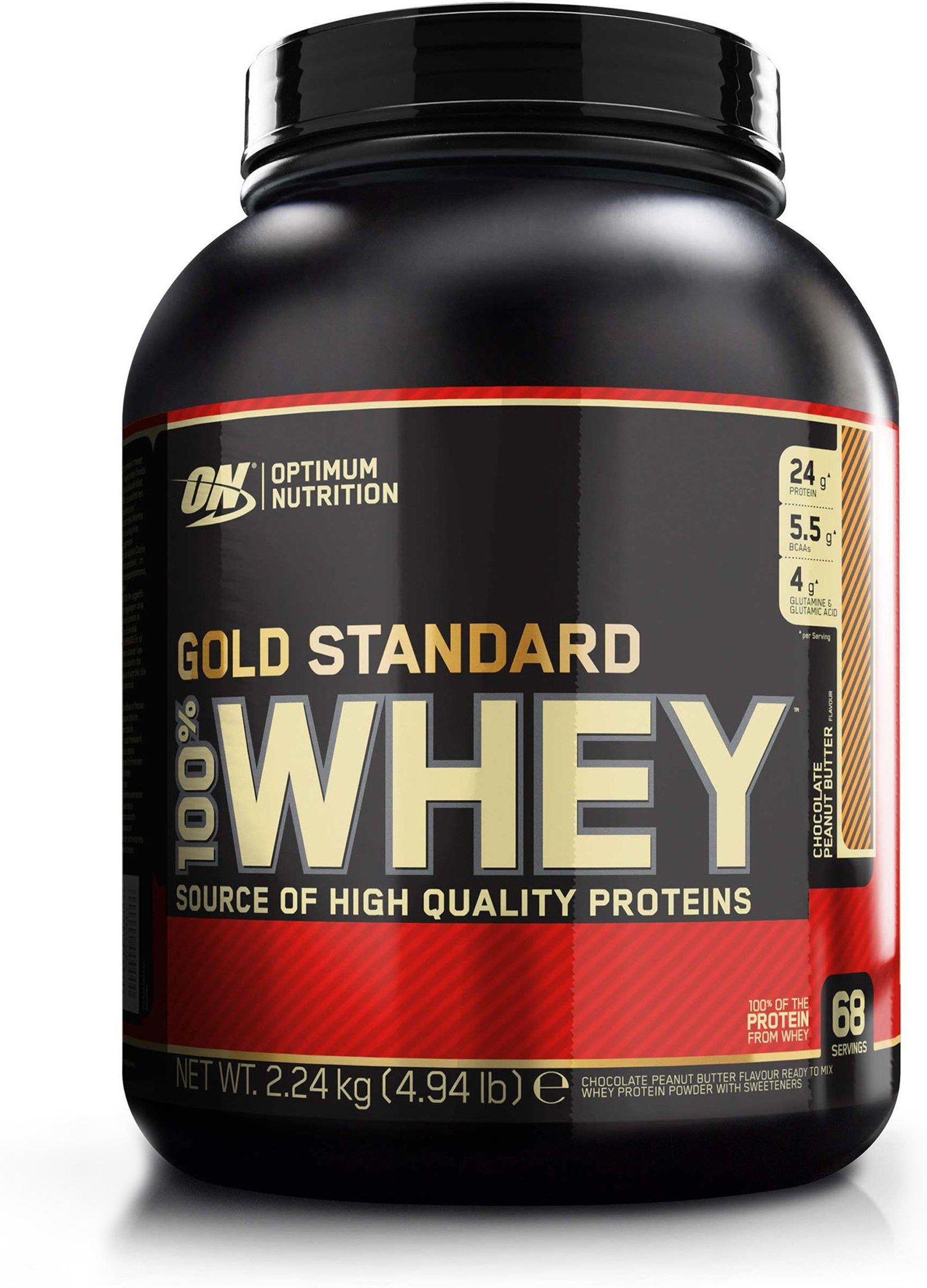 Gold Standard 100% Whey marki Optimum Nutrition to suplement diety w proszku, który zaspokoi Twoje potrzeby białkowe i nada Twojemu treningowi nowego wymiaru. W smaku czekoladowego masła orzechowego, ten produkt zawiera aż 24 g białka, co przekłada się na lepsze wyniki treningowe. Dzięki Gold Standard 100% Whey marki Optimum Nutrition, możesz cieszyć się wysokiej jakości białkiem, które pomoże Ci zbudować mięśnie i zregenerować się po treningu. kład: Wielkość opakowania: 2270 g Porcja jednorazowa: 32 g Ilość porcji w opakowaniu: 71 Składniki32 gRWSEnergia488 kJ / 117 kcal6%Tłuszcz w tym: tłuszcze nasycone1.3 g 0.5 g2% 3%Węglowodany w tym: cukry2.2 g 1.0 g1% 1%Błonnik0,6 gBiałko24 g47%Sól0,5 g8% RWS - Dzienna referencyjna wartość spożycia Nie ustalono dziennej referencyjnej wartości spożycia Składniki: Mieszanka białek serwatkowych (91%) [mleko] (izolat białka serwatkowego, koncentrat białka serwatkowego, hydrolizowany izolat białka serwatkowego, emulgator: lecytyna sojowa), aromat, kakao o obniżonej zawartości tłuszczu, chlorek sodu, substancja zagęszczająca (guma ksantanowa), substancje słodzące (sukraloza, acesulfam K). Sposób użycia: Wymieszać około jednej miarki proszku w 180-240 ml zimnej wody, mleka lub innego napoju. Mieszać, wstrząsać lub miksować do rozpuszczenia. Aby uzyskać najlepsze rezultaty, należy przygotować koktajl 30-60 minut po treningu lub stosować go jako przekąskę w dowolnym czasie w ramach zrównoważonej diety. W przypadku zdrowych osób dorosłych, należy spożywać wystarczającą ilość białka, aby zaspokoić dzienne zapotrzebowanie na białko poprzez połączenie wysokobiałkowych produktów spożywczych i suplementów białkowych w ciągu dnia, jako część zrównoważonej diety i programu ćwiczeń. Przeciwwskazania: Nadwrażliwość na którykolwiek ze składników preparatu. W okresie ciąży i karmienia piersią przed zastosowaniem należy skonsultować się z lekarzem lub farmaceutą. Przechowywanie: W miejscu niedostępnym dla małych dzieci. Przechowywać w suchym miejscu, unikać nadmiernego ciepła. Nie używać, jeśli uszczelka pod korkiem jest uszkodzona lub jej brakuje. Informacja: Produkt nie może być stosowany jako substytut (zamiennik) prawidłowo zróżnicowanej diety. Zrównoważony sposób żywienia i prawidłowy tryb życia jest ważny dla funkcjonowania organizmu człowieka. Nie należy przekraczać maksymalnej zalecanej porcji do spożycia w ciągu dnia.