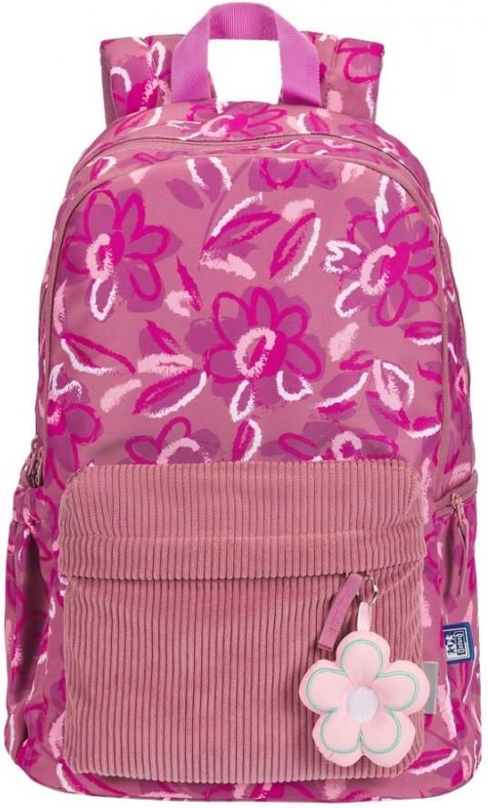 Plecak Oxford Bloom to połączenie stylu i ekologicznej świadomości. Wykonany z trwałego poliestru pochodzącego z recyklingu, jest idealnym wyborem dla osób dbających o środowisko. Jego wyjątkowy, kwiatowy wzór dodaje uroku i sprawia, że plecak wyróżnia się na tle klasycznych modeli – to doskonała propozycja zarówno do szkoły, na uczelnię, jak i na codzienne wyjścia. Plecak Oxford Bloom posiada dużą, funkcjonalną komorę główną, która pomieści książki, zeszyty i inne niezbędne przedmioty. Na przodzie znajduje się stylowa kieszeń z miękkiego sztruksu, idealna na drobiazgi, które chcesz mieć zawsze pod ręką. Praktyczny, wygodny i z charakterem – Oxford Bloom to plecak, który sprosta wszystkim Twoim wymaganiom! Cechy główne: dwie pojemne komory pozwalają spakować niezbędne szkolne przybory, zeszyty i podręczniki wewnątrz znajduje się usztywniona kieszeń na laptopa 13"- 15", która doskonale zabezpiecza sprzęt podczas transportu usztywnione, modelowane plecy zapewniają wygodę i ergonomię noszenia plecaka plecak jest lekki i wytrzymały, dzięki czemu wygodny, a jednocześnie odporny na długie użytkowanie wodoodporny materiał doskonale chroni zawartość plecaka przed deszczem i wilgocią do produkcji plecaka użyto poliestru z recyklingu, dzięki czemu produkt jest przyjazny dla środowiska Cechy dodatkowe: elegancki, kwiatowy design został zaprojektowany w zgodzie z najnowszymi trendami i nadaje plecakowi niepowtarzalnego wyrazu wewnętrzny organizer zamykany na suwak pomaga utrzymać doskonały porządek w plecaku z boku plecaka umieszczono kieszeń na bidon, klucze lub małą elektronikę z przodu kieszeń ze sztruksowego materiału do plecaka dołączono brelok w kształcie kwiatka 2 lata gwarancji od daty zakupu wymiary: 43 x 29 x 15 cm pojemność: 26 l kolor ciemnoróżowy
