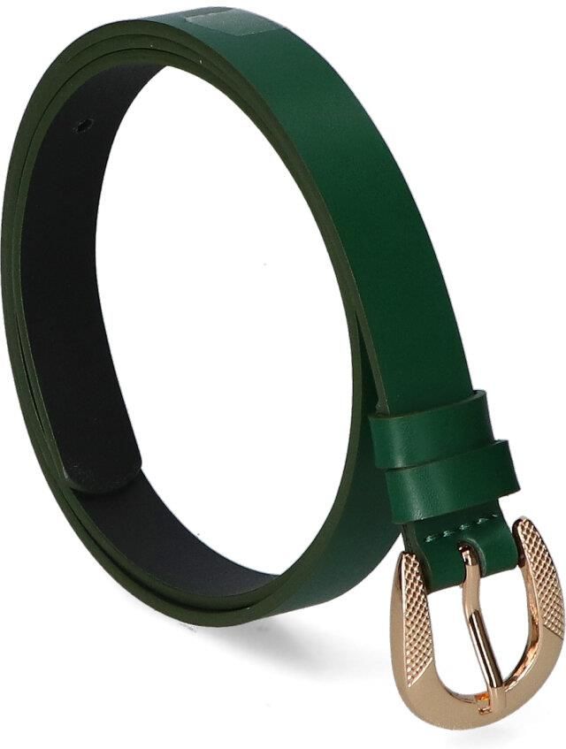 Pasek skórzany marki Maza: - Wykonany ze skóry naturalnej - Klamra w kolorze złotym - Pasek o szerokości 2 cm - Zielony kolor