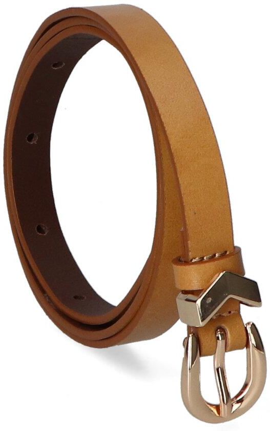 Pasek skórzany marki Maza: - Wykonany ze skóry naturalnej - Klamra w kolorze złotym - Pasek o szerokości 1,5 cm - Brązowy kolor