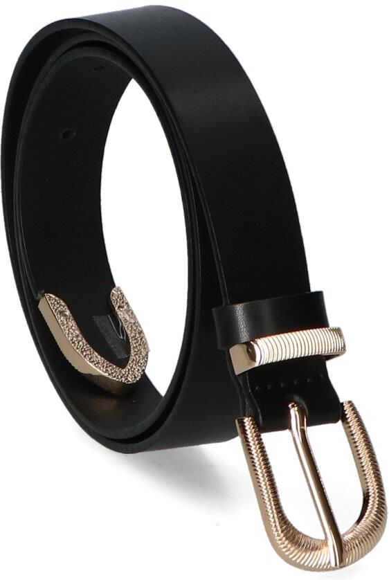 Pasek skórzany marki Maza: - Wykonany ze skóry naturalnej - Klamra w kolorze złotym - Pasek o szerokości 2,5 cm - Klasyczny, czarny kolor