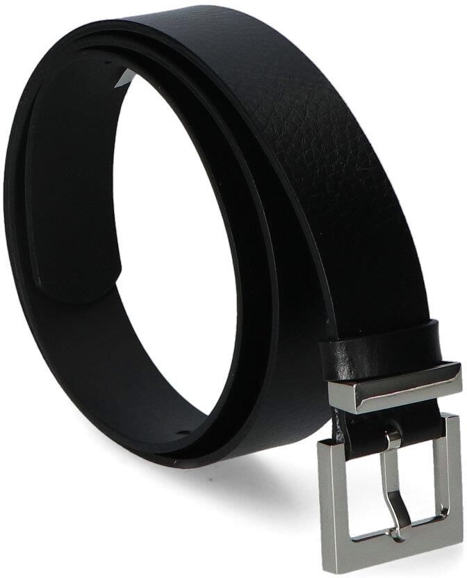 Pasek skórzany marki Maza: - Wykonany ze skóry naturalnej - Klamra w kolorze srebrnym - Pasek o szerokości 3 cm - Klasyczny, czarny kolor