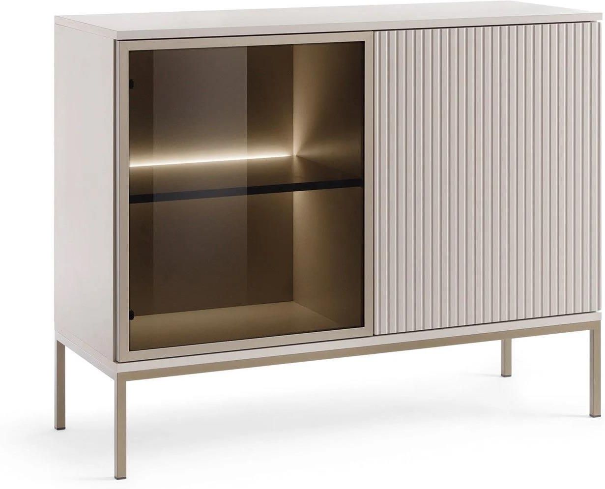 Komoda dwudrzwiowa Sento (K104) marki Piaski z oświetleniem LED w kolorze kaszmirowym to elegancki i funkcjonalny mebel, idealny do nowoczesnych wnętrz.Korpus szafki wykonany jest z wysokiej jakości płyty laminowanej o grubości 16 mm, co zapewnia jej trwałość i odporność na uszkodzenia mechaniczne …