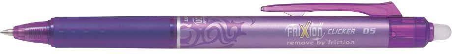 Pióro kulkowe Frixion Clicker 0,5 fioletowe Pilot automatyczne, wymazywalne pióro kulkowe Napisz… usuń… popraw z automatyczną wersją pióra FriXion! Napisany piórem Frixion tekst potrzyj dynamicznie szarą końcówką i zobacz jak znika w magiczny sposób! Możesz natychmiast poprawić swoje błędy i pomyłki. znika przy temperaturze +65?, a powraca przy temperaturze -10? dzięki specjalnemu tuszowi Metamo i silikonowej gumce umieszczonej na końcu pióra w każdej chwili można wymazać tekst i wpisać na jego miejsce nowy Tusz Metamo, wrażliwy na zmiany temperatury, został opatentowany przez Pilot'a. Dzięki niemu PILOT zrewolucjonizował rynek artykułów piśmiennych! unikalny tusz Metamo jest idealny dla osób leworęcznych opływowy kształt i dekoracyjny tatuaż sprawiają, że Frixion posiada swój młodzieńczy styl nie powinien być stosowany przy wypisywaniu oficjalnych dokumentów kula wykonana z węglika wolframu wymienny wkład grubość końcówki piszącej: 0,5 mm