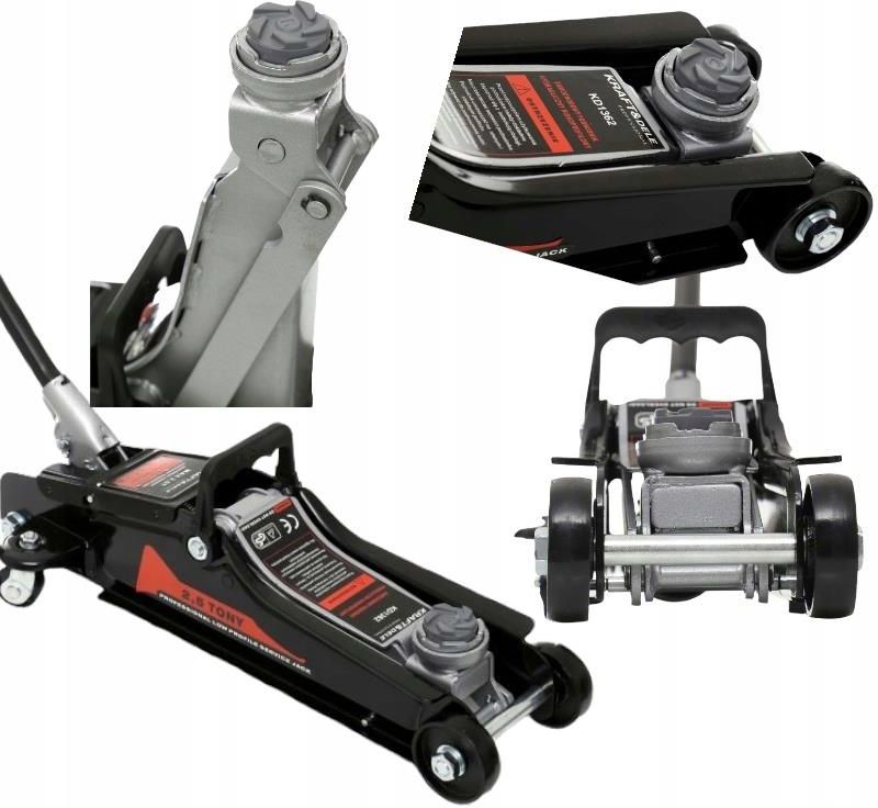Podnośnik samochodowy niskoprofilowy 2,5T 90-340 mm PODNOŚNIK NISKI LEWAREK 2,5T ŻABA zakres podnoszenia - 90mm-340 mm udźwig - 2,5 T W SKŁAD ZESTAWU WCHODZI podnośnik hydrauliczny DANE TECHNICZNE Udźwig - 2500 kg Niski profil - 90 mm Długość - 540 mm Zakres podnoszenia - od 90 do 340 mm Grubość profilu podnośnika (blachy): 4 mm Waga: ok 12 kg Wysokiej jakości niskoprofilowy podnośnik samochodowy marki Kraft&Dele Posiada konstrukcję opartą o zasadę dźwignika ramieniowego z napędem hydraulicznym działającym w osi poziomej w zakresie od 90 mm do 340mm. Cechą charakterystyczną podnośnika jest jego niewielka wysokość początkowa, dzięki czemu można wsunąć podnośnik pod każde auto, szczególnie przydatne przy samochodach o obniżonym zawieszeniu (sportowych, tuningowanych). Niezbędny w warsztatach samochodowych, serwisach ogumienia i stacjach obsługi pojazdów. Wygoda i bezpieczeństwo Lewarek został wyposażony w ergonomiczną rączkę do wygodnego przenoszenia. Uchwyt płynnie obraca się na okrągłych prowadnicach, co umożliwia jego prawidłowe funkcjonowanie. Istnieje również możliwość zamocowania rączki na przednich śrubach. PODNOŚNIK WYPOSAŻONY W REGULACJĘ SIŁY PODNOSZENIA Nasz podnośnik oferowany w tej aukcji Wykonany jest z grubej blachy stalowej, zapewniającej odpowiednią sztywność konstrukcji. Wyposażony w szerokie koła prowadzące, zwiększają stabilność przy podnoszeniu auta. Dwa przednie kółka na łożyskach kulkowych pozwalają przesuwać podnośnik w dowolne miejsce pod pojazdem Zakres podnoszenia: 90 mm - 340 mm CECHY PRODUKTU ✅Podnośnik umożliwia podniesienie obiektu o ciężarze do 2500 kg. ✅Idealny do domowego garażu jak i profesjonalnego warsztatu. ✅Idealnie nadaje się do aut sportowych z niskim zawieszeniem po przez niski profil. ✅Wysokość narzędzia z opuszczonym ramieniem (mierzona od talerza) to 90mm ✅Podnośnik posiada koła jezdne dzięki czemu jest wygodniejszy w użytkowaniu. Tylne stałe, przednie łożyskowane skrętne ✅Konstrukcja urządzenia jest wzmocniona wspornikami, co przekłada się na wysoką wytrzymałość. Wykonana z walcowanej blachy stalowej Duży skok pracy siłownika hydraulicznego, który został umieszczony poziomo Bezawaryjny tłok Podnośnik fabrycznie zalany jest olejem hydraulicznym - gotowy do użytku. Solidny podnośnik, który sprawdzi się w każdych warunkach! NISKOPROFILOWY - podnośnik posiada szeroki zakres podnoszenia od 90 do 340 mm. Urządzenie bez problemu poradzi sobie z samochodami o nisko osadzonym podwoziu sportowym REALNY UDŹWIG 2,5 TONY! - podnośnik bez problemu poradzi sobie z samochodami osobowymi, dzięki czemu jest to niezbędnik w każdym garażu, a także podczas podróży MOCNY SIŁOWNIK - wykorzystanie wydajnego mechanizmu hydraulicznego sprawia, że podnoszenie jest szybsze i łatwiejsze ŁATWA WYMIANA OLEJU - To nie jest jednorazówka. Jeżeli zabraknie oleju lub zajdzie potrzeba odpowietrzenia podnośnika, to zrobisz to samodzielnie bez problemu w kilka chwil. GUMOWA NAKŁADKA - niezbędnik każdego podnośnika premium, zapewniający bezpieczne podnoszenie. Dzięki niemu masz pewność, że nie porysujesz i nie zniszczysz podwozia Najwyższa jakość = podnośnik na lata! SOLIDNA KONSTRUKCJA - podnośnik wykonano z GRUBEJ I WYTRZYMAŁEJ STALI. Jest to po prostu podnośnik na lata! SZEROKIE I MASYWNE KOŁA - zamontowane kółka sprawią, że będziesz w stanie bez problemu manewrować podnośnikiem tak, by było Ci wygodnie, ustawiając go dokładnie pod podwoziem GRUBE WSPORNIKI I PROFILE - dzięki nim cała konstrukcja jest znacznie solidniejsza i przede wszystkim - bezpieczniejsza podczas pracy Dzięki, podnośnikowi wykonasz bezpiecznie większość prac przy samochodzie, oszczędzając pieniądze, które musiałbyś wydać u mechanika! Wymienisz koła, opony Naprawisz układ wydechowy Wymienisz olej, płyn chłodzący Sprawdzisz układ hamulcowy Wykonasz regularny przegląd stanu samochodu Naprawisz zawieszenie Wymienisz zużywające się części, takie jak: wahacze, przeguby i wiele więcej Łatwa obsługa - podnośnik, którego potrzebujesz Podnośnik obsługuje się bardzo łatwo. Wystarczy zakręcić zawór siłownika za pomocą rękojeści, a następnie pompować do pożądanej wysokości Wymiana oleju oraz odpowietrzanie podnośnika jest naprawdę proste, dlatego jest to urządzenie, które będzie służyć Ci wiele lat Skrętne koła Łożyskowe koła skrętne oraz solidne koła tylne sprawiają, że podnośnik jest mobilny i można go łatwo ustawić pod pojazdem Gumowa podkładka Do podnośnika dołączona jest gumowa podkładka, które zapewnia bezpieczne podnoszenie, zapobiegając zarysowaniu podwozia Solidne siodło podnośnika rozkłada ciężar, sprawiając, że podnoszenie samochodów o leciwym podwoziu jest bezpieczniejsze POLIPROPYLENOWO-KAŁCZUGOWA RĄCZKA Elastyczna i wytrzymała rączka , wysoce odporna na różnego rodzaju zadrapania bądź pęknięcia oraz wygodna w dotyku