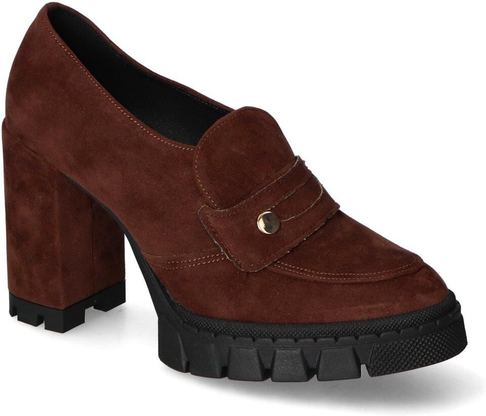 Eleganckie półbuty polskiej marki For-But: - cholewka wykonana została z ekozamszu - wnętrze pokryte zostało skórą ekologiczną aby zapewnić komfort podczas użytkowania - wkładka wewnętrzna wykonana została ze skóry ekologicznej - obcas o wys. 10 cm dodaje szyku i elegancji - brązowy kolor oraz elegancki fason tworzą efekt, który zachwyci każdą kobietę!