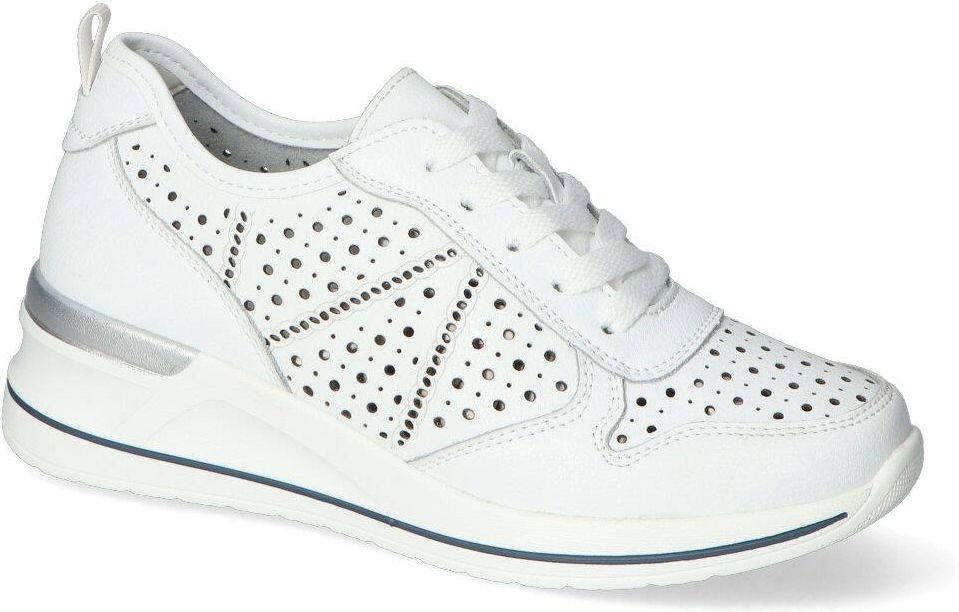 Półbuty damskie renomowanego producenta Sergio Leone: - cholewka wykonana w całości ze skóry naturalnej licowej - wnętrze pokryte zostało skórą ekologiczną - wkładka wewnętrzna wykonana ze skóry naturalnej zapewnia komfort podczas użytkowania - sznurowanie ułatwia zakładanie i dopasowanie obuwia - podeszwa o grubości 5 cm zapewnia odpowiednią stabilizację - biały kolor, ażurowy wzór i modny fason tworzą niesamowite połączenie!