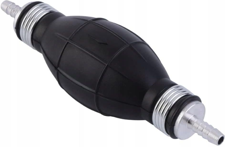 POMPKA RĘCZNA 10mm Ręczna pompka wyposażona w zaworek zwrotny zapobiegający cofaniu się płynu. Świetnie sprawdzi się przy pompowaniu różnego rodzaju płynów tj.: ropa, woda, benzyna, czy olej. Została wykonana z wysokiej jakości gumy. Króćce haczykowate są wykonane z aluminium. Dodatkowo pompka jest odporna na wysoką i niską temperaturę. SPECYFIKACJA długość: 150mm, szerokość: 42mm, średnica: 10mm. średnica środkowa króćca: 6mm. Ciecz nie jest zasysana samoczynnie, trzeba cały czas naciskać pompkę.
