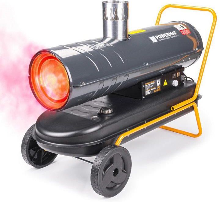 Nagrzewnica olejowa z kominem PM-NAG-40SKN 40kW + Wyświetlacz LCD KUPUJ NA TEJ AUKCJI ! Dlaczego warto kupić właśnie u nas? Największa ilość sprzedanych sztuk – to nie przypadek! Tysiące zadowolonych klientów już nam zaufało. Zadowolenie klientów mówi samo za siebie – sprawdź opinie i przekonaj się, że dbamy o najwyższą jakość obsługi. Jesteśmy oficjalnym dystrybutorem marki POWERMAT w Polsce – masz pewność oryginalnego produktu, pełnej gwarancji i wsparcia producenta. Najnowsza poprawiona wersja produktu - model tegoroczny, na innych aukcjach sprzedawcy oferują stare modele zeszłoroczne tzw. leżaki magazynowe. Kupujesz bez ryzyka Wybierając naszą ofertę, stawiasz na pewność, jakość i doświadczenie. Dołącz do grona zadowolonych klientów – kup teraz i przekonaj się sam! Parametry techniczne Producent: Powermat Moc: 40000 W Zasilanie: 230 V / 50 Hz Przepływ powietrza: 920 m³/h Rodzaj paliwa: olej napędowy, lekki olej opałowy Maksymalne zużycie paliwa: 2,5 l/h Zalecana do powierzchni: 200 m² Moc wentylatora: 250 W Pojemność zbiornika paliwa: 56 L Wymiary urządzenia: 1065 x 480 x 745 [mm] Waga nagrzewnicy: 30 kg ZAWARTOŚĆ ZESTAWU ✔️ Nagrzewnica olejowa 40 kW ✔️ Instrukcja obsługi PL Ergonomia Wbudowany 5-łopatkowy wentylator o wysokiej wydajności zapewni przepływ powietrza do 920 m³/h. Wysokiej klasy silnik, wbudowany zapłon piezoelektryczny oraz zabezpieczenie przed przegrzaniem odcinające dopływ paliwa zagwarantuje wydajną i bezpieczną pracę. Nagrzewnica olejowa doskonale sprawdzi się podczas ogrzewania warsztatów, hal, magazynów itp. Cechy produktu Automatyczny palnik olejowy Wbudowany wskaźnik ciśnienie paliwa Uchwyt na przewód zasilający Komora spalania ze stali nierdzewnej INOX Funkcja wychładzania komory spalania Elektroniczny czujnik zapłonu Termostat przegrzania Wyświetlacz LCD Cyfrowy termostat Nagrzewnica wyposażona jest w cyfrowy termostat z płynną regulacją temperatury. Zapewnia on wysoką wydajność cieplną i oszczędność paliwa. Po osiągnięciu zadanej temperatury następuje automatyczne wyłącznie nagrzewnicy, a następnie ponowny automatyczny rozruch gdy temperatura spadnie poniżej temperatury ustawionej na wyświetlaczu. Zmniejsza to zużycie paliwa oraz umożliwia utrzymywanie odpowiedniej stałej temperatury w pomieszczeniu. Elektroniczne sterowanie temperaturą, dwa wyświetlacze: do ustawienia temperatury grzania oraz pokazujący aktualną temperaturę otoczenia. Komin do odprowadzania spalin Zaletą nagrzewnic olejowych z odprowadzeniem spalin jest oczywiście, wydmuchiwane ogrzanego powietrza całkowicie wolnego od dymu. Cechy takie jak natychmiastowa gotowość do rozpoczęcia pracy, prostota obsługi i mobilność, umożliwiająca wykorzystanie jednego urządzenia w różnych miejscach sprawia, że znajdują zastosowanie w praktycznie każdej branży. Nagrzewnice przenośne z odprowadzeniem spalin cieszą się szczególną popularnością w sektorach takich jak budownictwo i prace remontowe, rolnictwo, warsztaty i magazyny, imprezy okolicznościowe, sytuacje kryzysowe, a nawet terenowe działania wojskowe. Charakterystyka pracy urządzenia Wentylator wymusza przepływ zimnego powietrza przez urządzenie i kieruje je w stronę wylotu nagrzewnicy. Paliwo pobrane ze zbiornika wtryskiwane jest przez dyszę do zamkniętej komory spalania, gdzie elektroda wyzwala zapłon. Płomień rozgrzewa wymiennik ciepła, a spaliny odprowadzane są na zewnątrz przez komin w górnej części obudowy. Energia cieplna zostaje przekazana do powietrza okalającego wymiennik i jest wydmuchiwana z nagrzewnicy w postaci jednostajnego strumienia czystego i gorącego powietrza. Wskaźnik poziomu paliwa Wbudowany wziernik informuje o stanie poziomu paliwa. Duże koła jezdne zapewniają bezpieczniejszy i łatwiejszy transport urządzenia. Zastosowanie nagrzewnicy olejowej PM-NAG-40SKN 40kW + Wyświetlacz LCD Nagrzewnica o mocy 40 kW to niezastąpione urządzenie wszędzie tam, gdzie liczy się szybkie i wydajne ogrzewanie dużych powierzchni. Budownictwo – ogrzewanie hal, warsztatów, placów budowy i pomieszczeń w trakcie prac remontowych Magazyny i hale produkcyjne – zapewnienie odpowiednich warunków pracy w chłodnych miesiącach Rolnictwo i hodowla zwierząt – utrzymanie optymalnej temperatury w oborach, kurnikach i szklarniach Domki letniskowe i altany – szybkie dogrzanie w chłodniejsze dni (przy odpowiedniej wentylacji) Osuszanie pomieszczeń – idealna pomoc po remontach, tynkowaniu, malowaniu lub zalaniach