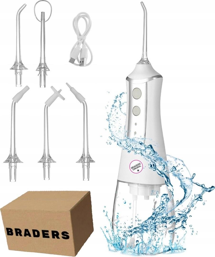 PROFESJONALNY DENTYSTYCZNY IRYGATOR DO ZĘBÓW BEZPRZEWODOWY MOCNY – 5 DYSZ Zaawansowany irygator dentystyczny z 5 wymiennymi końcówkami Model ten oferuje silny strumień wody o ciśnieniu od 2 do 8 bar, pracując z prędkością 1600-1800 impulsów na minutę. Dzięki temu precyzyjnie usuwa resztki jedzenia i osady, docierając nawet do trudno dostępnych miejsc. Jednocześnie poprawia ukrwienie dziąseł, co wspomaga ich regenerację. Skutecznie rozwiąż problemy z jamą ustną Osad na zębach Nieprzyjemny zapach z ust Nagromadzony kamień nazębny Próchnica Krwawiące dziąsła Schorzenia przyzębia 5 specjalistycznych końcówek dla kompleksowej higieny Standardowa – do codziennej pielęgnacji zębów i dziąseł Do płukania jamy ustnej – zapewnia świeży oddech i dokładne oczyszczenie Do języka – usuwa bakterie odpowiedzialne za nieprzyjemny zapach z ust Ortodonta – doskonała dla osób z aparatami, koronami i implantami Periodontyczna – łagodna dla delikatnych dziąseł, wspiera zdrowie przyzębia Całkowicie wodoodporny – IPX7 Możesz bezpiecznie korzystać z irygatora pod prysznicem lub w wannie. Dzięki odporności na wodę łatwo go wyczyścisz pod bieżącą wodą, co ułatwia utrzymanie urządzenia w higienicznej czystości. Mocny strumień wody i 3 tryby działania: Clean – dokładne usuwanie zanieczyszczeń i resztek jedzenia Pulse – delikatny masaż dziąseł dla poprawy krążenia krwi Surf – łagodny tryb dla wrażliwych zębów i dziąseł Silny napęd generuje ciśnienie wody od 2 do 8 bar, co gwarantuje precyzyjne czyszczenie miejsc trudno dostępnych szczoteczką. Pojemny zbiornik na wodę – 300 ml Zbiornik o pojemności 300 ml pozwala na dokładne umycie zębów bez konieczności uzupełniania wody. Łatwy w czyszczeniu – zbiornik można odłączyć i opłukać Wygodne napełnianie – specjalny otwór ułatwia uzupełnianie wody bez potrzeby rozbierania urządzenia Specyfikacja Wodoodporność: IPX7 Pojemność zbiornika na wodę: 300 ml Zasilanie: 5V 1A Moc: 5W Typ zasilania: Akumulatorowe Kolor urządzenia: Biały Do 40 dni pracy na jednym ładowaniu! Złącze: USB-C Instrukcje przed pierwszym użyciem Przed pierwszym uruchomieniem zaleca się przepłukanie pojemnika na wodę gorącą wodą, aby zapewnić maksymalną higienę. Zadbaj o zdrowe i czyste zęby! Dzięki bezprzewodowemu irygatorowi skutecznie oczyścisz zęby, przestrzenie międzyzębowe oraz dziąsła. Idealny do codziennego stosowania oraz dla osób noszących aparaty ortodontyczne, implanty czy korony.