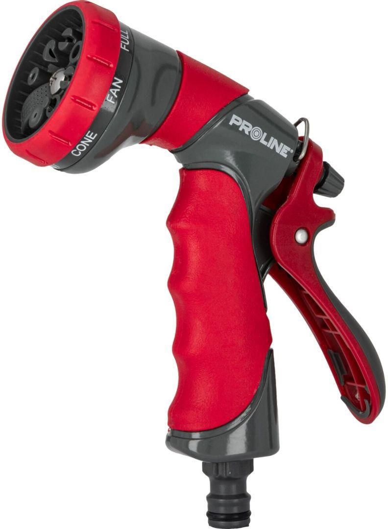 Zraszacz pistoletowy metal deluxe 17 8-fk karta Proline tworzywo - metal i ABS stopniowa regulacja rodzaju strumienia wodyw 8 różnych pozycjach blokada pracy ciągłej