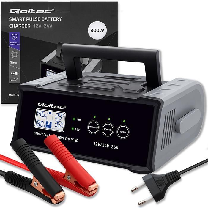 Prostownik/ładowarka Qoltec do akumulatora AGM, GEL, SLA, WET, Calcium z funkcją naprawy 12V/24V 25A Białystok