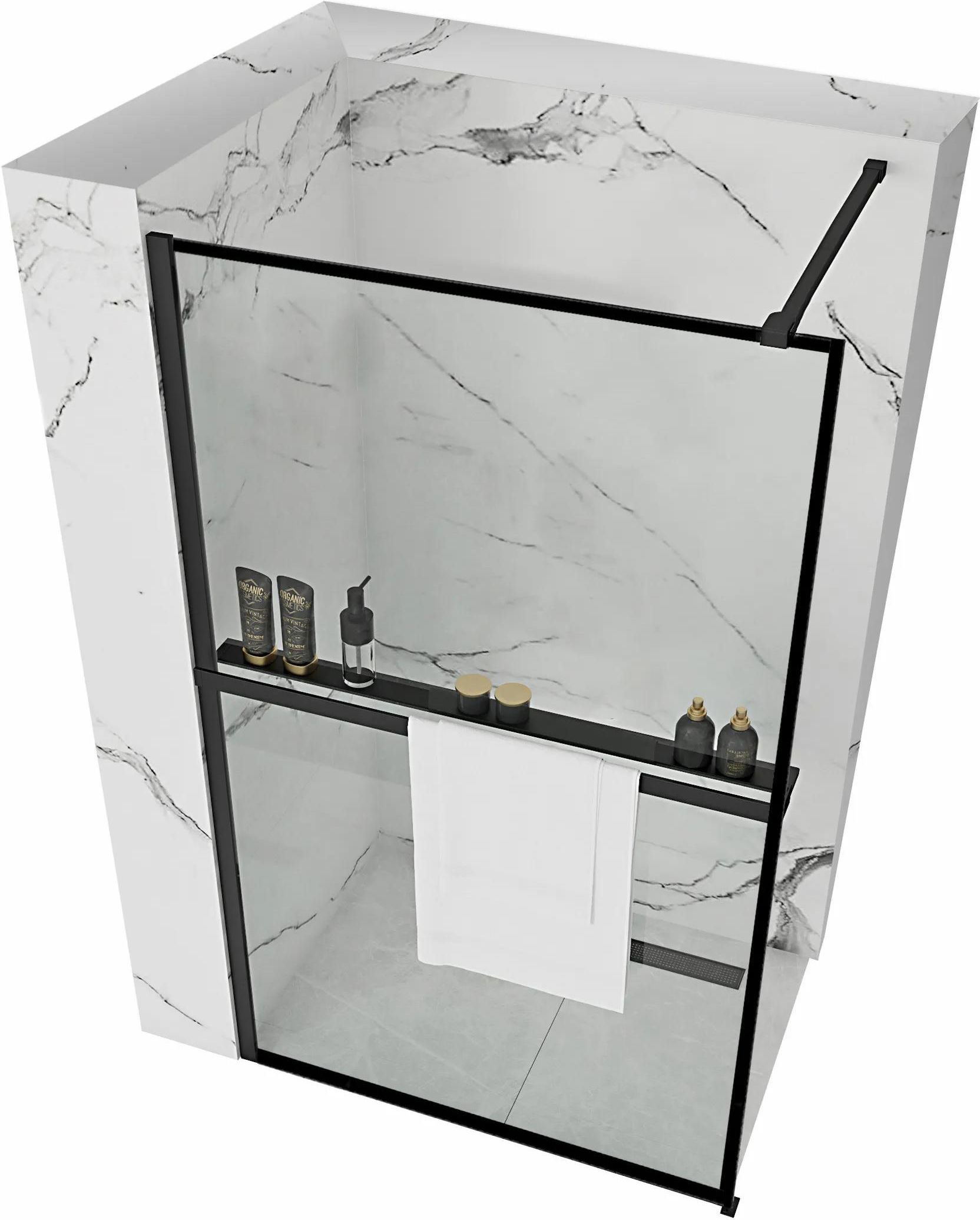 ŚCIANKA PRYSZNICOWA 100 CZARNA KABINA WALK IN REA BLER Z PÓŁKĄ WIESZAK EVO Ścianka prysznicowa Bler 100 Czarna z półką EVO Nowoczesna ścianka typu walk-in Bler to idealne rozwiązanie do łazienek, w których liczy się estetyka, funkcjonalność i wygoda użytkowania. Transparentne szkło hartowane 8 mm w połączeniu z czarnymi profilami aluminiowymi tworzy stylowy, lekki wizualnie efekt, który wprowadza harmonię do każdej strefy prysznicowej. W zestawie znajduje się również praktyczna półka z wieszakiem EVO, która ułatwia organizację przestrzeni i dodaje codziennego komfortu. Regulowana konstrukcja ścianki umożliwia łatwe dopasowanie do wybranej aranżacji. Najważniejsze korzyści Swobodne, wygodne wejście – otwarta konstrukcja walk-in zapewnia komfort użytkowania i brak ograniczeń podczas korzystania z prysznica. Estetyczna, lekka wizualnie forma – transparentne szkło i czarne profile dodają wnętrzu elegancji i nowoczesnego charakteru. Szkło hartowane 8 mm – odporne na uszkodzenia i bezpieczne w codziennym użytkowaniu. Powierzchnie łatwe w czyszczeniu – jednolite tafle szkła ułatwiają utrzymanie kabiny w nienagannej czystości. Czarny aluminiowy profil – stabilna i wytrzymała konstrukcja odporna na korozję. Półka EVO z wieszakiem na ręczniki – praktyczne miejsce do przechowywania kosmetyków i odwieszania ręczników, z możliwością docięcia do szerokości szyby. Intuicyjny montaż – półka mocowana za pomocą śrub, ścianka instalowana na brodziku lub płytkach. Uniwersalna konstrukcja – możliwość montażu po lewej lub prawej stronie i dopasowania wysokości półki. Półka EVO – praktyczny dodatek do strefy prysznicowej Półka EVO to funkcjonalny element, który zwiększa wygodę użytkowania ścianki typu walk-in. Wykonana z odpornego na uszkodzenia aluminium w matowym czarnym kolorze, świetnie komponuje się z nowoczesnymi aranżacjami. To praktyczne rozwiązanie łączące dwie funkcje – półki na kosmetyki oraz wieszaka na ręczniki. Półkę można dociąć do szerokości szyby, co pozwala idealnie dopasować ją do konstrukcji ścianki. Montaż półki jest intuicyjny: wystarczy ustawić ją na wybranej wysokości i dokręcić śruby stabilizujące. Specyfikacja techniczna Producent: Rea Typ produktu: Ścianka prysznicowa walk-in Model: Bler Rozmiar: 100 cm Wysokość: 1950 mm Rodzaj szkła: Hartowane Grubość szkła: 8 mm Kolor szkła: Transparent (przezroczyste) Kolor profili: Czarny Materiał profili: Aluminium Regulacja: 990–1010 mm Kierunek montażu: Uniwersalny Montaż: Na brodziku lub posadzce Półka EVO: Aluminium, czarny mat, długość do 120 cm, szerokość 6,5 cm