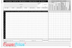 Druk Roczna Karta Ewidencji Obecności w Pracy firmy MICHALCZYK I PROKOP Wykonany został z kartonu offsetowego Druk jest dwustronny Znajduje zastosowanie jako uniwersalny druk kadrowy - roczne zestawienie obecności pracownika w pracy Produkt zawiera 50 kart w komplecie W poręcznym formacie A5 (w …