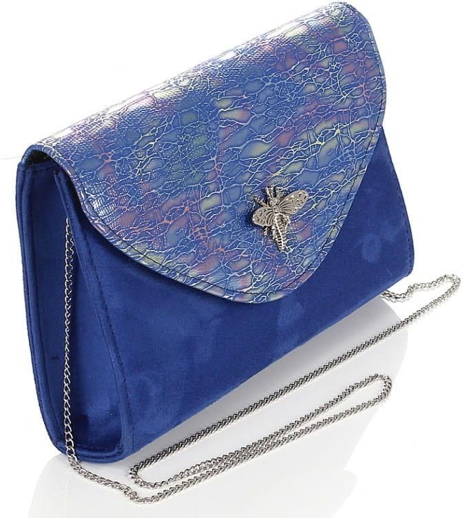 Elegancka torebka typu kopertówka, wykonana z najwyższej jakości skóry ekologicznej. Torebka w całości powstała z materiałów kaletniczych, dzięki czemu jest odporna na warunki atmosferyczne (w odróżnieniu od tanich zamienników, powstałych z materiałów odzieżowych). Torebka wyprodukowana w Polsce ✅ Torebka zamykana jest na magnes. ✅ Korpus wykonany z nubuku ekologicznego ✅ Na klapie wstawka z pięknie mieniącego się na różne kolory materiału typu KAMELEON ✅ Wnętrze wykończone jest mocną podszewką kaletniczą. ✅ W środku znajduje się kieszonka zamykana na zamek. ✅ Srebrny łańcuszek jest odpinany, można więc nosić torebkę w ręku. ✅ Genialny połączenie dwóch faktur materiałów ✅ Zgrabny, lecz pakowny, niezwykle efektowny model ✅ Znakomite uzupełnienie każdej eleganckiej stylizacji. Wymiary torebki: wysokość 15cm szerokość 25cm głębokość 5cm Kolor: kobalt nubuk + kameleon