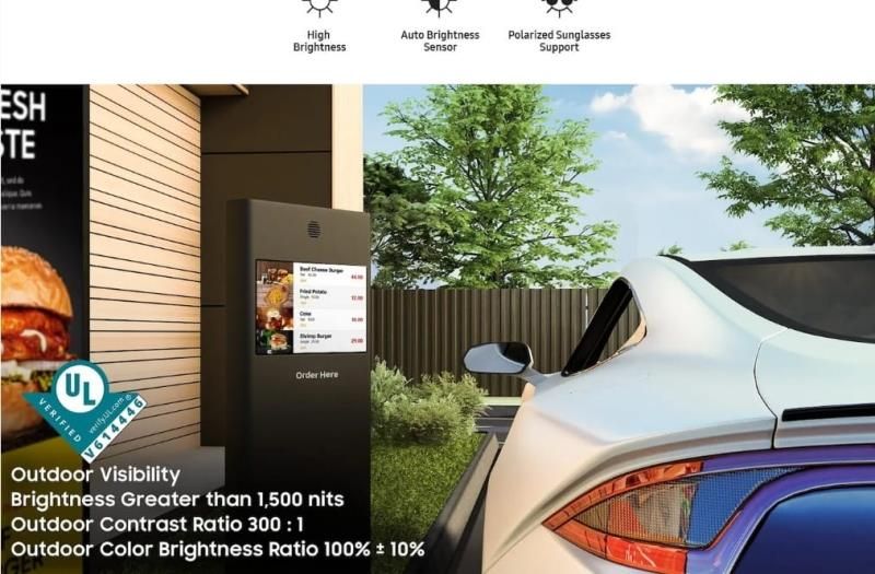 Odblokuj nowe możliwości, zbudowany z myślą o niezawodności na zewnątrz Wyświetlacz zewnętrzny OH24B firmy Samsung oferuje zoptymalizowaną jakość obrazu dla nowych możliwości biznesowych, takich jak promocja o dużym wpływie. OH24B zapewnia płynne operacje biznesowe dzięki niezawodnej technologii i zaawansowanej użyteczności ułatwiającej zarządzanie wyświetlaczem. Zoptymalizowana widoczność na zewnątrz Dzięki jasności ponad 1500 nitów zapewniającej lepszą widoczność na zewnątrz, OH24B wyświetla wyraźne treści na zewnątrz, nawet w bezpośrednim świetle słonecznym i dla widzów noszących okulary przeciwsłoneczne. W zmieniających się warunkach oświetleniowych, zintegrowany czujnik automatycznie dostosowuje ekran do odpowiedniej jasności. Certyfikowana wytrzymałość w różnych warunkach zewnętrznych Obudowa OH24B jest chroniona przed żywiołami dzięki stopniowi ochrony IP66, który zwiększa jej odporność na kurz w porównaniu do IP56. Odporność na kurz i wodę na poziomie IP66 zapewnia dłuższą żywotność i płynną pracę na zewnątrz. OH24B został zaprojektowany tak, aby wytrzymać intensywne warunki pogodowe nawet w ekstremalnie zapylonych obszarach. Zaawansowana technologia ochrony ekranu i bezpieczeństwa Klasyfikacja IK10 technologii Advanced Magic Glass w OH24B potwierdza, że ekran jest bardziej odporny. Skutecznie chroni to ekran, minimalizując uszkodzenia spowodowane uderzeniami fizycznymi. Funkcja blokady Kensington zmniejsza ryzyko kradzieży, a tym samym zapewnia dodatkowe bezpieczeństwo w firmie. Dane techniczne Nazwa Samsung OH24B 24" SKU LH24OHBEBGBXEN Nazwa modelu OH24B Marka Samsung Typ produktu Wyświetlacz bezdotykowy Seria Samsung OH Series Technologia LED Typ panelu IPS Podświetlenie LED Rozdzielczość 1920 x 1080 Full HD Przekątna 24" Proporcje obrazu 16:9 Kąt widzenia w poziomie 178° Kąt widzenia w pionie 178° Kontrast 1 000 :1 Max. jasność 1 500 cd/m² Czas pracy 24/7 Czas reakcji 14ms Standard VESA 100 x 100 Szerokość ramy 21,9 mm wejścia 1x Ethernet , 1x HDMI , 2x USB-A wyjścia 1x 3,5mm Jack Szerokość produktu 57,3 cm Wysokość produktu 34,24 cm Głębokość produktu 5,98 cm Waga 8,4 kg Kolor Czarny EEK Spectrum A do G Zakres dostawy Pilot , Skrócona instrukcja obsługi , baterie , kabel zasilający