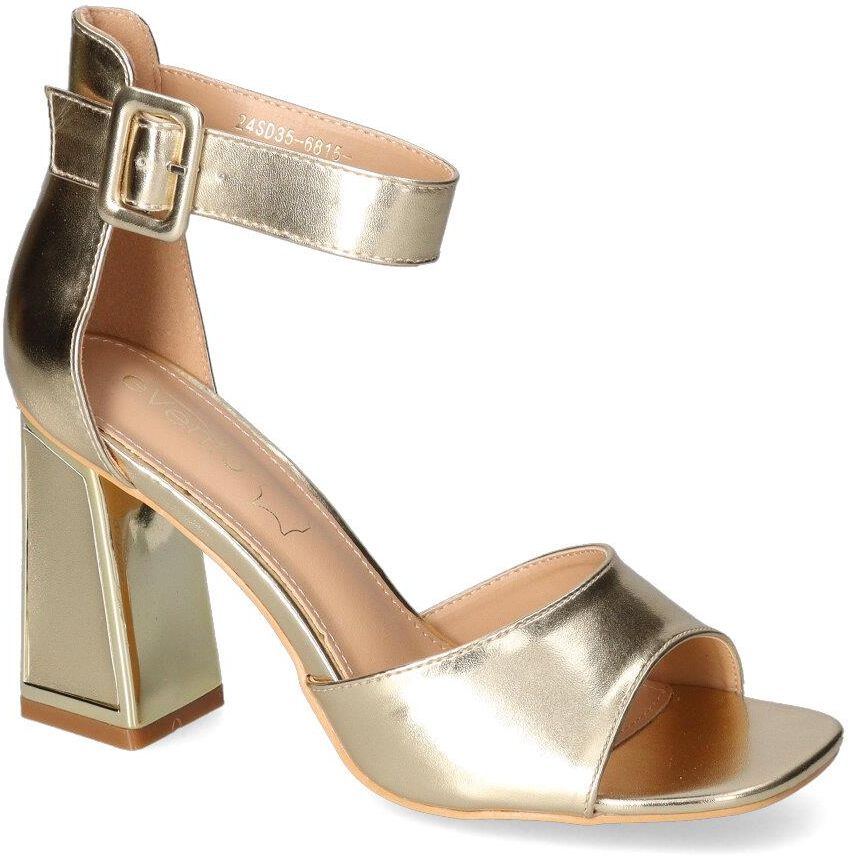 Sandały Evento na słupku, wykonane ze skóry ekologicznej, to idealny wybór dla kobiet, które pragną połączyć styl z komfortem. Ich zachwycający złoty kolor doda blasku każdej stylizacji, czyniąc je doskonałym uzupełnieniem zarówno na codzienne wyjścia, jak i na bardziej formalne okazje.Model ten charakteryzuje się otwartym przodem oraz regulowanym zapięciem na kostce, co zapewnia doskonałe dopasowanie i stabilność. Słupkowy obcas, w eleganckim stylu, nie tylko dodaje wysokości, ale także gwarantuje wygodę podczas noszenia. Co więcej, skórzana wkładka zapewnia komfort, co czyni te sandały idealnym wyborem na długie godziny spędzone na nogach.Sandały Evento są wszechstronne i łatwo je zestawić z różnorodnymi stylizacjami – od wieczornych sukienek po eleganckie spodnie. Ciesz się stylem i wygodą, które oferują te wyjątkowe sandały, które szybko staną się Twoim ulubionym modelem na każdą okazję.