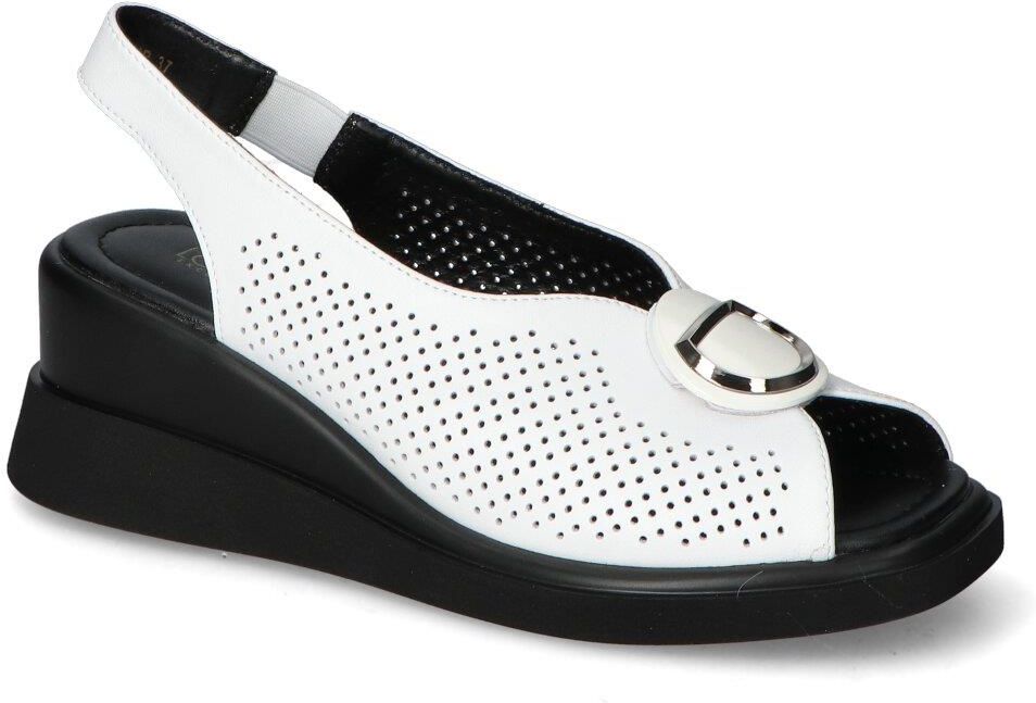 Wyjątkowe sandały produkcji Loretta Vitale:- cholewka wykonana została ze skóry naturalnej licowej - wnętrze pokryte zostało skórą ekologiczną, aby zapewnić komfort podczas użytkowania - wkładka wewnętrzna wykonana została ze skóry naturalnej - elastyczny pasek ułatwia zakładanie i dopasowanie obuwia - koturn o wysokości 6,5 cm zapewnia odpowiednią stabilizację - biały kolor i modny fason tworzą niepowtarzalny efekt!
