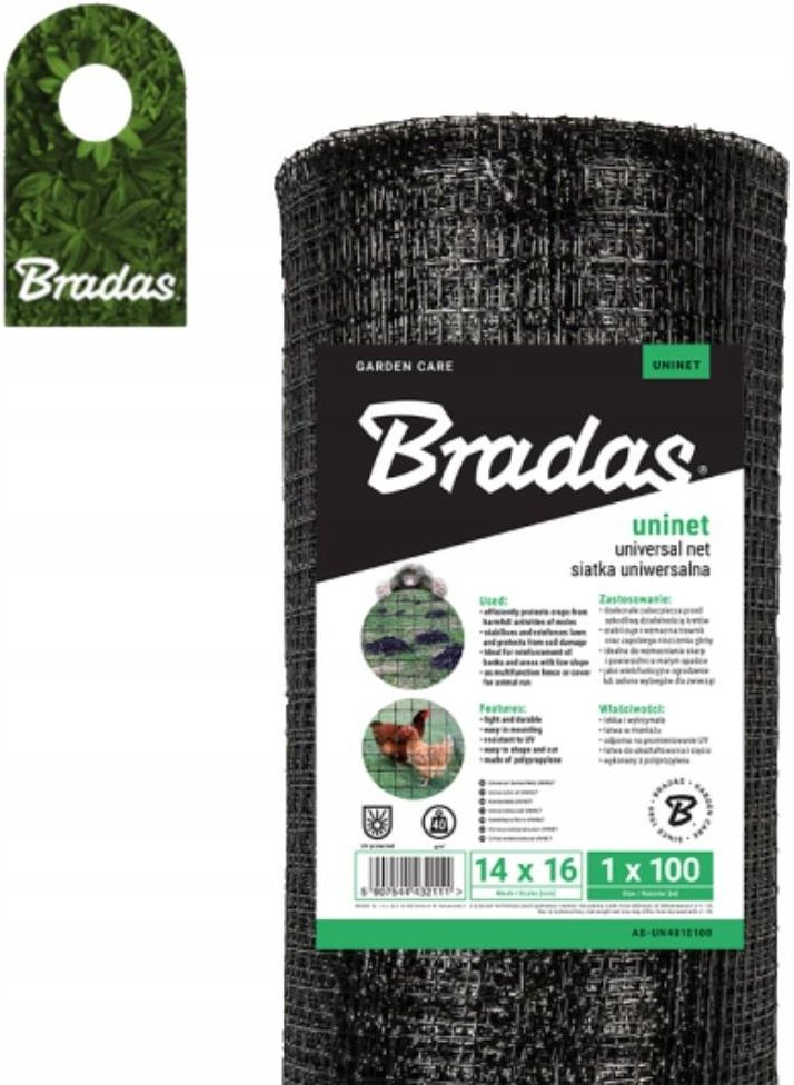 Siatka uniwersalna UNINET, 40g/m2, oczko 14x16mm, 1x100m Siatka uniwersalna UNINET . Lekka, elastyczna i odporna na odkształcenia. Zastosowanie: - zabezpieczenie ogrodu przed kretami - ogradzanie klatek dla zwierząt Cechy: - łatwa w modelowaniu i cięciu - wymiary pojedyńczej kratki: 14x16mm (może wystąpić tolerancja szerokości kratki do 1,5mm) - odporna na promieniowanie UV, mróz i inne czynniki atmosferyczne - wykonana z polipropylenu EAN: 5907544432111