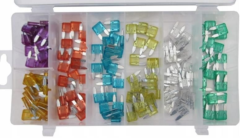 ZESTAW BEZEPIECZNIKÓW SAMOCHODOWYCH 140 SZT MINI S10532 W zestawie mieści się 140 sztuk bezpieczników w sześciu rozmiarach; Bezpiecznikom nadano różne kolory, aby łatwo je od siebie rozróżnić; Zestaw bezpieczników ma zastosowanie podczas konserwacji lub naprawy instalacji elektrycznej w samochodzie; Komplet bezpieczników mini ma zastosowanie w różnych modelach samochodowych; Montaż bezpieczników jest szybki i łatwy, przeprowadza się go bez wykorzystania narzędzi; ZAWARTOŚĆ ZESTAWU 3A - 20 SZT 5A - 20SZT 10A - 20SZT 15A - 20SZT 20A - 20SZT 25A - 20SZT 30A - 20SZT