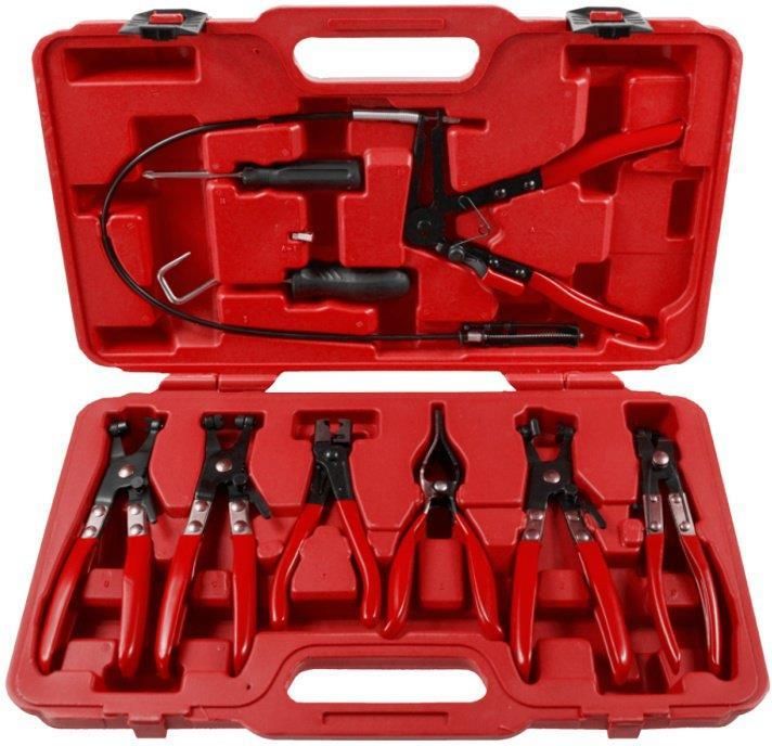 SZCZYPCE DO OPASEK ZACISKOWYCH 9el. Zestaw szczypiec do opasek zaciskowych, który gwarantuje komfort pracy w serwisie samochodowym czy domowym warsztacie. Wszystkie elementy wykonano z wysokiej jakości materiałów. Szczypce z obrotowymi szczękami pasują do większości rodzajów sprężystych opasek zaciskowych, obrotowe szczęki ponacinane w celu dobrego trzymania dużych i małych zacisków pod dowolnym kątem. Blokada zapadkowa umożliwiająca przytrzymanie szczęk w 5 różnych pozycjach. Blokada pozwala na bezpieczne trzymanie naprężonej opaski. Szczypce do opasek zaciskowych z linką pozwalają zdejmować opaski zaciskowe i blokować ją w pozycji otwartej. Precyzyjny zacisk na końcu giętkiej linki umożliwia dojście do trudno dostępnych miejsc. Umożliwiają zdejmowanie plastikowych i metalowych samozaciskowych opasek w zakresie od 18-54 mm. Jak poprzednie te również posiadają blokadę opasek. Zestaw składa się z 9 elementów Szczypce do opasek z obrotowymi szczękami-szczypce pasują do większości rodzajów sprężystych opasek zaciskowych, obrotowe szczęki ponacinane w celu dobrego trzymania dużych i małych zacisków pod dowolnym kątem. Blokada zapadkowa umożliwiająca przytrzymanie szczęk w 5 różnych pozycjach. Blokada pozwala na bezpieczne trzymanie naprężonej opaski. Szczypce do opasek zaciskowych z linką-pozwalają zdejmować opaski zaciskowe i blokować ją w pozycji otwartej. Precyzyjny zacisk na końcu giętkiej linki umożliwia dojście do trudno dostępnych miejsc. Umożliwiają zdejmowanie plastikowych i metalowych samozaciskowych opasek w zakresie od 18-54mm. Jak poprzednie te również posiadają blokadę opasek. Wygięte szczypce do wąskich opasek zaciskowych-umożliwiają zakładanie oraz zdejmowanie opasek w trudno dostępnych miejscach. Wygięte szczęki oraz obracające się końcówki pozwalają chwycić opaskę pod różnym jej kątem zamocowania. Również posiadają blokadę opaski co czyni pracę bezpieczną. Szczypce typu CLIC I CLIC-R- stosowane są do opasek wielokrotnego użytku w celu poluzowania a następnie ponownego zaciśnięcia. Szczypce do opasek z obrotowymi ponacinanymi szczękami. Szczypce do wąskich opasek-bardzo przydatne w przypadku małych i wąskich opasek. Szczypce-ściągacz doskonale nadają się do zdejmowania plastikowych, gumowych itp. przewodów. Posiadają zakres od 4-12,5mm Wkrętak Hak wspomagający Wszystko zapakowane w poręczna walizkę. (kolor w zależności od partii produkcji)