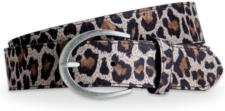 Skórzany pasek damski w panterkę z klasyczną półokrągłą klamrą