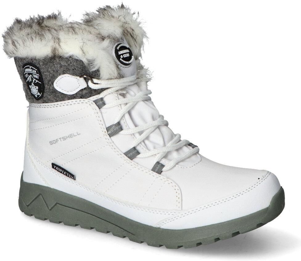 Wygodne śniegowce marki American Club:- cholewka wykonana została z tworzywa syntetycznego i materiału tekstylnego- Membrana TRIPLETEX- warstwa TRIPLETEX pomaga utrzymywać komfortowe warunki użytkowania obuwia, dzięki zaawansowanym właściwościom odprowadzania wilgoci - Softshell jest trójwarstwowym materiałem nowej generacji. Wyjątkowo miękki i lekki, zarazem niezwykle wytrzymały. Dzięki zaawansowanej technologi wilgoć odprowadzana jest na zewnątrz obuwia, jednocześnie nie pozwalając przenikać jej do środka. Materiał oddychając pozwala utrzymać świeżość wewnątrz buta. - wnętrze pokryte zostało materiałem ocieplającym - ocieplana wkładka wewnętrzna zapewnia ciepło podczas użytkowania w chłodne dni - podeszwa o grubości 2,5 cm zapewnia odpowiednią stabilizację - biały kolor oraz modny fason tworzą idealne połączenie!