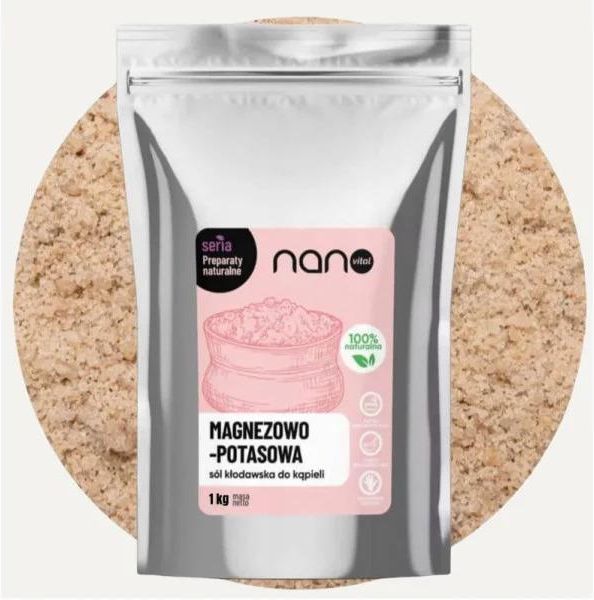 Naturalna sól magnezowo-potasowa z Kłodawy – relaks i pielęgnacja prosto z natury Zanurz się w odprężającym świecie minerałów z ekologiczną solą do kąpieli Nanovital, pozyskiwaną z najczystszych złóż kopalni soli w Kłodawie. Ta naturalna sól magnezowo-potasowa, bogata w pierwiastki śladowe, wspiera nie tylko kondycję skóry, ale również pomaga się zrelaksować, zregenerować ciało i umysł po długim dniu. Dlaczego warto wybrać sól Nanovital? naturalny skład – bez dodatków chemicznych. Sól pochodzi z ekologicznych złóż i zawiera wyłącznie naturalne minerały, takie jak: karnalit, kizeryt, halit, anhydryt, oraz magnez, potas, cynk i żelazo. Relaksująco-regenerujące działanie poprawia elastyczność i gładkość skóry wspiera odprężenie mięśni i układu nerwowego działa odtruwająco i przeciwzapalnie doskonała przy zmęczeniu, stresie, przeciążeniu fizycznym Idealna do kąpieli całego ciała lub stóp Produkt polecany do domowych rytuałów SPA – zarówno w wannie, jak i do moczenia stóp. Jak stosować? Kąpiel regeneracyjno-kosmetyczna. Dodaj 1–1,5 kg soli do wanny z ciepłą wodą (ok. 38°C), zanurz się na min. 20 minut. Dla lepszego efektu dodaj kilka kropel naturalnych olejków eterycznych. Po kąpieli opłucz ciało czystą wodą. Kąpiel stóp. Wsyp 100–200 g soli do miski z wodą (ok. 50°C) i mocz stopy przez 15–20 minut. Nie spłukuj – pozostaw stopy do naturalnego wyschnięcia. Informacje dodatkowe Pojemność: 1 kg (opakowanie typu doypack) Kraj pochodzenia: Polska Dystrybutor: Nanovital s.c., ul. Okrężna 4, 33-100 Tarnów Przechowywanie: w chłodnym i suchym miejscu, z dala od dzieci Termin ważności: minimum 18 miesięcy od daty dostawy Naturalna pielęgnacja w zgodzie z ekologią Wybierając sól kąpielową Nanovital, sięgasz po naturalne wsparcie w pielęgnacji skóry, ulga dla zmęczonych mięśni i chwilę dla siebie – bez sztucznych dodatków i kompromisów.