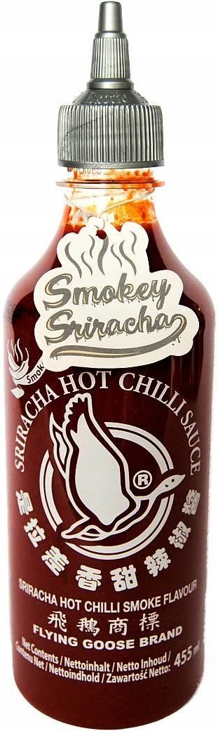 Sos chilli sriracha hot wędzona dymna smokey azjatycki flying goose 455ml SRIRACHA CHILLI SOS WĘDZONY SMOKEY DYMNY OSTRY 455MLto tajski sos chili z aromatem dymy wędzarniczego. dymny posmak przeplata się z ostrością i pikantnością aromatycznego sosu głównym składnikiem są przetarte papryczki chili. …