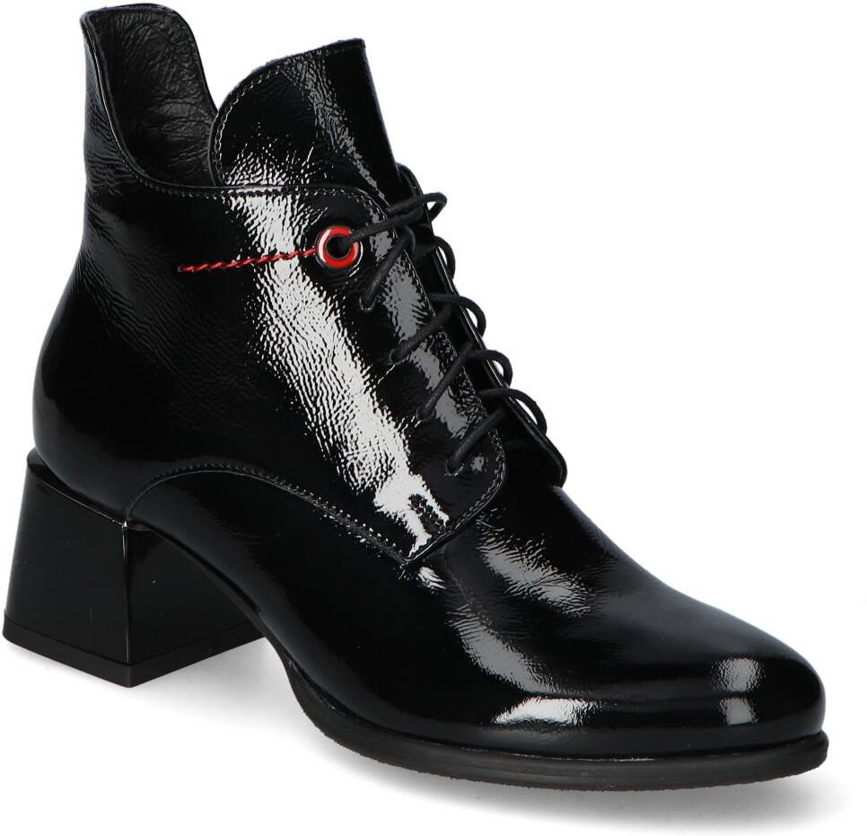 Wyjątkowe botki znanej marki Lemar: - cholewka wykonana została ze skóry naturalnej lakierowanej - wnętrze zostało pokryte materiałem ocieplającym - ocieplana wkładka wewnętrzna aby zapewnić ciepło podczas użytkowania w chłodne dni - zamek błyskawiczny oraz sznurowadła ułatwiają zakładanie i dopasowanie obuwia - obcas o wys. 5,5 cm zapewnia stabilizację i nadaje elegancji - czarny kolor oraz modny fason zachwycą każdą kobietę!