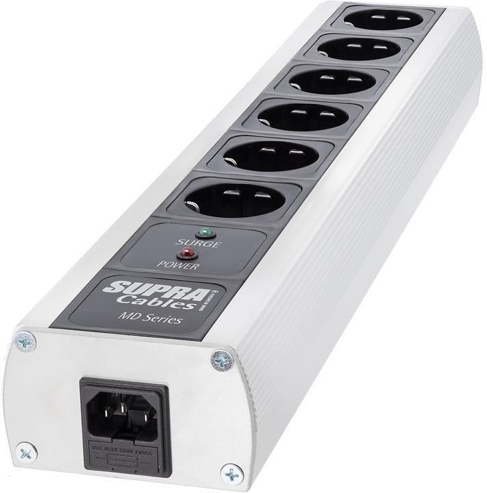 Supra MD06-EU/SP Mk3.1 - listwa zasilająca z nieinwazyjną filtracją Non-Intrusive Filtering, 3-stopniową ochroną przeciwprzepięciową Surge Protection i wyposażona w sześć gniazd wyjściowych. Ponieważ ilość urządzeń elektrycznych używanych w domach i mieszkaniach ciągle wzrasta, oprócz listew posiadających 6 gniazd, do wyboru są także wersje posiadające 8 lub 10 gniazd - SUPRA MD-08-16 EU/SP Mk3 i SUPRA MD10-16-EU/SP Mk3. Liczba 16 w tym wypadku dotyczy poziomu zabezpieczenia. Listwy 6-gniazdowe posiadają zabezpieczenia 10A natomiast listwy 8 i 10-gniazdowe wymagają zabezpieczenia 16A. W listwach tych zastosowane jest inne gniazdo do podłączenia przewodu, przystosowane do wyższego obciążenia. Należy o tym pamiętać przy zakupie kabla łączącego listwę z gniazdem ściennym. Zamiast kabla z typową końcówką IEC podłączamy kabel z końcówką SWS-16. Istotną zaletą listwy Supra MD-06-EU Mk3 jest fakt, iż zastosowane rozwiązania zabezpieczające nie wpływają ujemnie na dźwięk. Wprost przeciwnie - "oczyszczony" z zakłóceń prąd sprawia, że podłączoneurządzenia pracują w stabilniejszych warunkach elektrycznych, dając w efekcie czystszy i bardziej przestrzenny dźwięk. Cechy produktu Ekranowany blok wykonany z aluminium Interferencje fal radiowych zredukowane o 40dB! Wewnętrzne okablowanie z miedzi OFC o przekroju 2.5 mm kw. Jest w stanie przenieść ciągłą moc obciążenia 2300W! Chroni użytkownika i system audio Hi-Fi przed szkodliwymi polami szumu i promieniowania! Możliwy montaż na ścianie Wielodrożna ochrona przed przepięciami. Podczas gdy inni producenci zatrzymują się na ochronie jednokierunkowej tylko między fazą L a przewodem neutralnym N dla źródeł mocy, Supra oferuje pełną 3-stopniową ochronę wymaganą aby chronić system audio HiFi np. w przypadku bliskiego uderzenia pioruna. Aby wpełni wykorzystać potencjał tej ochrony ważne aby listwę Supry podłączyć wyłącznie do gniazdek ściennych z uziemieniem. Nieinwazyjny obwód filtrujący NIF Transient Filter zapewnia mniejszy szum i filtrowanie częstotliwości radiowej, które nie spowolni przekazu i nie "zdusi" dynamiki systemu audio Hi-Fi. Aby nasze listwy zasilające były bardziej elastyczne i dostosowane do potrzeb wszystkich użytkowników Supra usunęła filtrację na gniazdku wyjścia nr 1. W razie potrzeby Supra może dostarczyć niestandardową konfigurację np. filtr na wszystkich lub połowie gniazd wyjściowych. Standardowa konfiguracja listwy z NIF jest następująca: Output 1 - bez filtracji rekomendowane dla wzmacniaczy, Output 2 - 6 - z filtracją. Specyfikacja techniczna Obudowa: aluminium Gniazda: europejski standard Gniazdko wejściowe: SUPRA MCH-10, IEC320 10A Gniazdka wyjściowe: 6 x SUPRA MCH-16/EU, Schuko żeńskie. Maksymalne obciążenie prądowe: 10A Maksymalne napięcie: 250V Maksymalna moc ciągła obciążenia: 2300W Bezpiecznik: Ceramic 10A, wolny. Ochrona przeciwprzepięciowa: Type 3, Uoc = 2.5kV(P-N), 4.0kV(P(N)-PE), Up = 2.0kV(P-N), 2.05V(P(N)-PE) Waga: 1.3kg Wymiary (DxSxW): 432 x 89 x 53mm Możliwy montaż na ścianie za pomocą uchwytów W komplecie nie znajduje się kabel zasilający