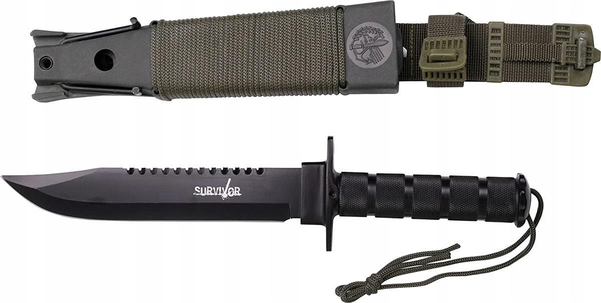 Survivor HK-56141B Nóż ze stałym ostrzem Długość 355 mm Ostrze 200 mm ze stali nierdzewnej, grzbiet ostrza ząbkowany Pochwa