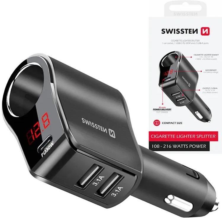 Swissten Ładowarka Samochodowa 2Xusb Usbc Białystok