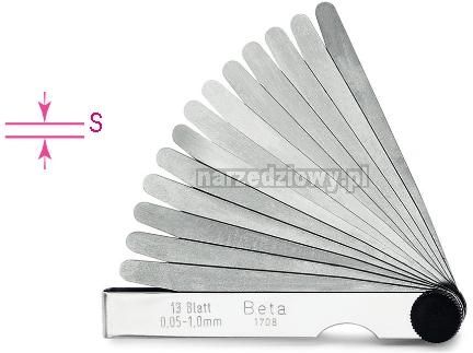 SZCZELINOMIERZ METRYCZNY 0,05-1MM 1708/20 BETA CECHY PRODUKTU Profesjonalny szczelinomierz metryczny BETA 1708/20 z 20 stalowymi płytkami z przedziału od 0,05 do 1mm służący do precyzyjnego określenia wielkości szczelin lub luzów pomiędzy sąsiadującymi powierzchniami. W roku 1939 w Włoszech firma Beta została pierwszy raz zaprezentowana światu. Zaangażowanie kolejnych pokoleń pracowników pozwoliło na szybki rozwój, tak aby na początku lat 70-tych firma zatrudniała ponad 200 osób. Wysoka jakość produktów i innowacyjne rozwiązania umożliwiły marce Beta zdobycie uznania fachowców na rynkach całego świata. W 1975 firma Beta wkracza w świat wyścigów samochodowych. Z narzędzi firmy Beta korzystają m.in. zespoły Scuderia Ferrari oraz Yamaha MotoGP. Obecnie firma Beta posiada w swoje ofercie ponad 10000 pozycji, wśród nich można znaleźć profesjonalne narzędzia, meble warsztatowe, a także obuwie i ubrania BHP.