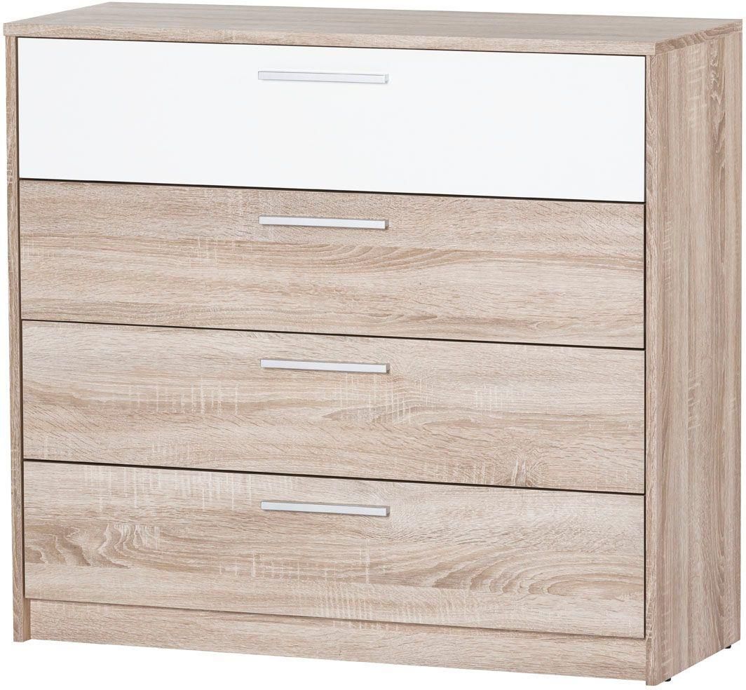 Komoda Milo to mebel idealny do sypialni. Kolor mebla biały/dąb sonoma wpasuje się w wiele aranżacji w nowoczesnych wnętrzach jak również we wnętrzach klasycznych. Szafka posiada szuflady. Płyta laminowana to płyta, z której wykonano komodę. Do kompletu można dokupić inne meble z kolekcji. …