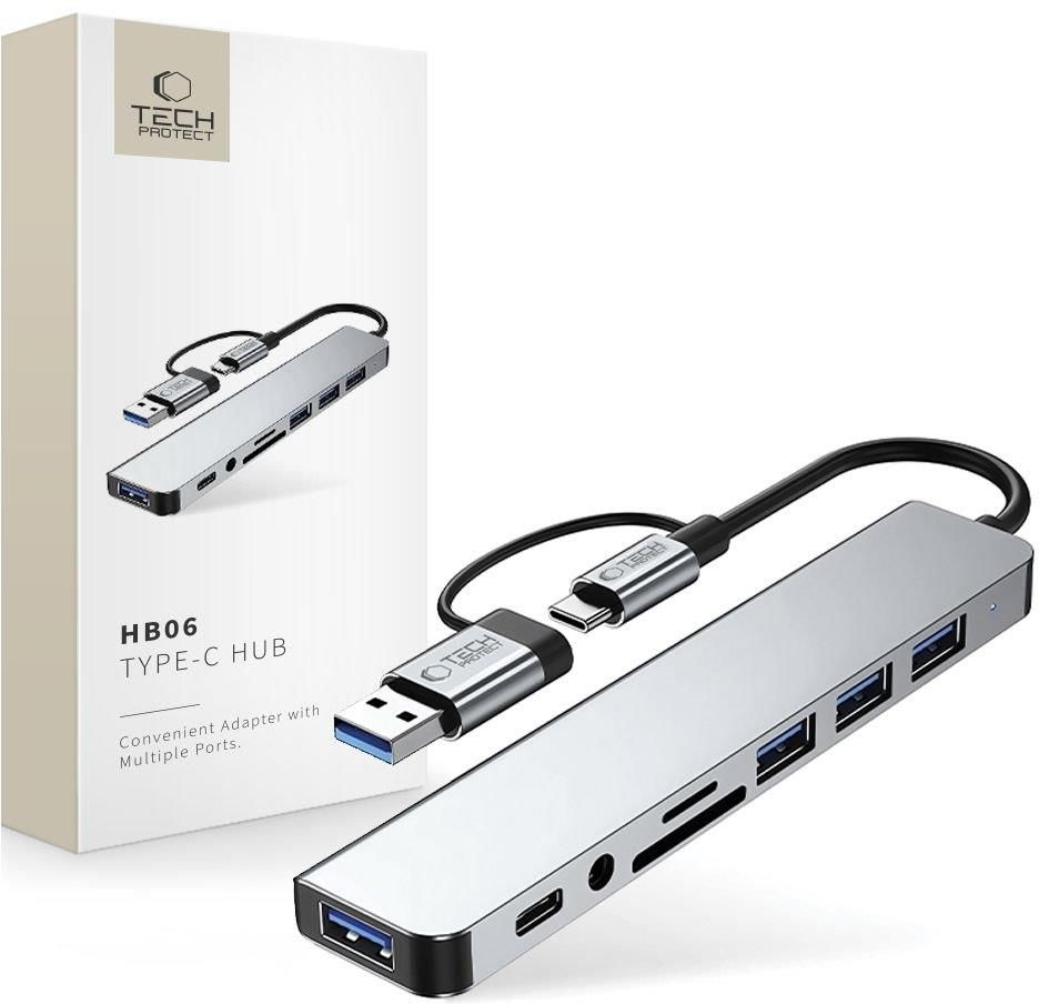 TECH-PROTECT HB06 HUB ADAPTER 9IN1 TYPE-C + USB2.0 + USB3.0 + SD/TF + AV3.5 SPACE GREY Tech-Protect HB06 HUB Adapter 9in1 to kompaktowe, wielofunkcyjne urządzenie odpowiednie dla wszystkich komputerów obsługujących port USB-C. Dzięki solidnej konstrukcji z aluminium i ABS, adapter jest lekki, a …