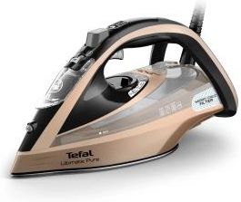 Tefal Ultimate 3 FV9852 Żelazko o mocy 3200 W szybko się nagrzewa, dzięki czemu jest gotowe do pracy niedługo po włączeniu. Duża moc gwarantuje również skuteczne wygładzanie zagnieceń. Skutecznie usuwaj zagniecenia Stały strumień pary 60 g/min gwarantuje optymalną ilość wytwarzanej pary umożliwiającą skuteczne usuwanie zagnieceń. Prasowanie żelazkiem z silnym strumieniem jest szybkie i łatwe. Wykorzystaj silne uderzenie pary Dodatkowe uderzenie pary o mocy 300 g/min umożliwia prasowanie w pionie i usuwanie nawet najbardziej uporczywych zagnieceń. Wykorzystaj silny wyrzut pary, aby prasować szybko i skutecznie. Odświeżaj firanki dzięki możliwości prasowania w pionie Jak wyprasować firanki bez zdejmowania ich z okna? Skorzystaj z funkcji prasowania w pionie, która umożliwia prasowanie bez dotykania materiału, przy użyciu gorącej pary. Możesz tak wyprasować również marynarki czy płaszcze. Bądź spokojny o pozostawione żelazko Śni Ci się po nocach czarny scenariusz - pozostawione w domu włączone żelazko? Śpij spokojnie. Funkcja "strażaka" automatycznie wyłącza żelazko, gdy jest ono nieużywane przez kilka minut. Przedłuż żywotność żelazka dzięki systemowi antywapiennemu Żelazko parowe jest narażone na osadzanie się kamienia, który może niszczyć urządzenie. Aby temu zapobiec zastosowano w tym modelu system antywapienny, który zapobiega osadzaniu się kamienia. Zapobiegnij plamom podczas prasowania Blokada kapania to funkcja, która zabezpiecza przed kapaniem wody podczas prasowania. Z urządzenia mogą wydobywać się krople wody, gdy spada temperatura stopy żelazka. Funkcja blokady odcina dopływ wody chroniąc Twoje ubrania.
