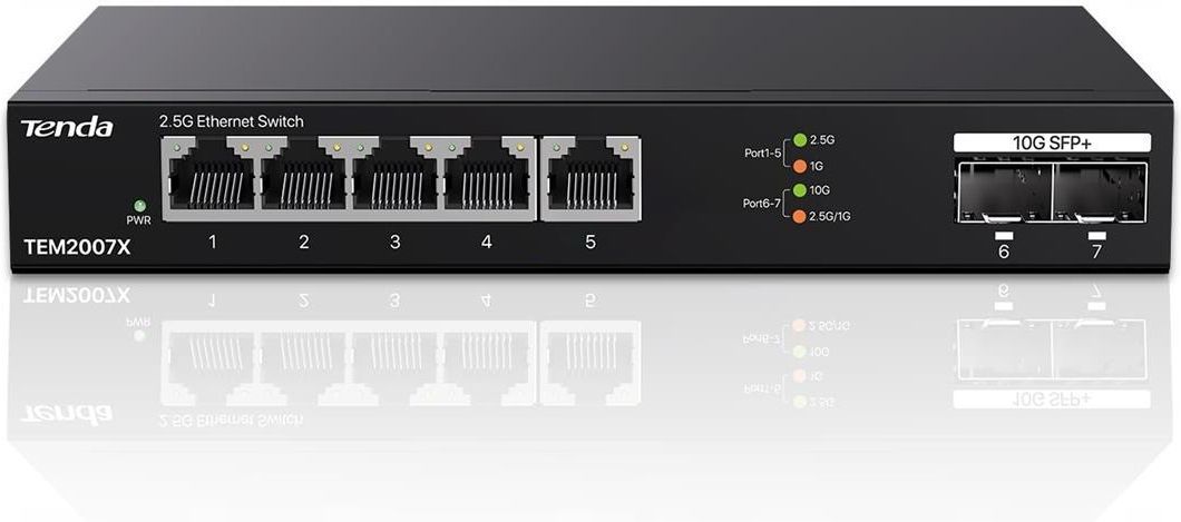 Tenda TEM2007X – przełącznik Multi-Gigabit 2,5G/10G Wysoka wydajność Multi-Gigabit Przełącznik Tenda TEM2007X oferuje 5 portów RJ45 2,5 Gb/s oraz 2 porty SFP+ 10 Gb/s, zapewniając łącznie przepustowość do 65 Gb/s. To idealne rozwiązanie dla NAS-ów, serwerów, komputerów gamingowych czy routerów WiFi …
