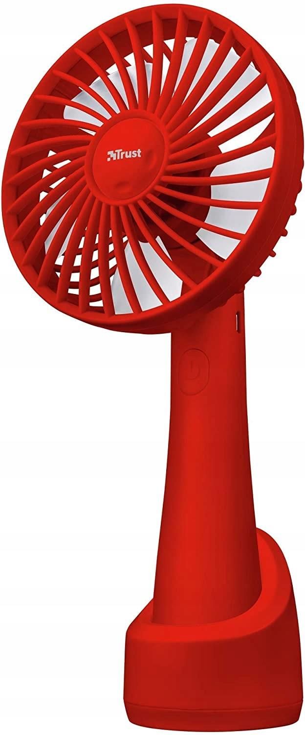 Trust Ventu-Go Portable Cooling Fan – red 23117 wentylator Przenośny wentylator chłodzący z akumulatorem i kompaktową podstawką Przenośny wentylator z wbudowanym akumulatorem; bądź cool wszędzie Do użytku w trybie ręcznym lub z dołączoną podstawą biurkową 3 poziomy prędkości wentylatora do wyboru …