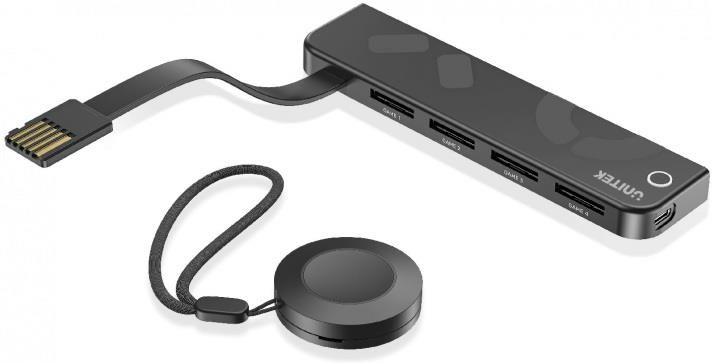 Pilot do przełączania gier Nie musisz już nawet wstawać z kanapy, żeby przełączyć się między najczęściej używanymi grami. Zdalny pilot o zasięgu 10m pozwala na łatwe przełączanie się między slotami na kartridże. Wygodny montaż w czterech krokach Jak zamontować rozszerzenie slotów kart do Nintendo Switch? To proste - w pierwszej kolejności przymocuj czytnik Unitek do górnej części obudowy stacji dokującej. Następnie podłącz kabel USB-C do urządzenia. Ostatnie dwa kroki to podłączenie kabla czytnika do slotu na kartridże w stacji dokującej, a następnie włożenie kartridży z grami do czytnika Unitek. Możemy zaczynać rozgrywkę! Idealnie dopasowany do stacji dokującej Nintendo Switch Stacja dokująca Nintendo Switch wraz z rozszerzeniem kartridży Unitek tworzy doskonale zgrany duet - konstrukcje obu urządzeń są ze sobą idealnie spasowane, a gry ładują się bez problemu z każdej karty. Intuicyjny przełącznik gier Przełączaj gry jednym kliknięciem - czytnik kartridży Unitek G1002E oprócz pilota, ma również przełącznik na obudowie. Aby przełączyć grę, wystarczy go jedynie nacisnąć. Dioda informująca o statusie urządzenia Wokół klawisza na czytniku znajduje się dioda emitująca światło w kilku kolorach. Zielony oznacza tryb Standby a biały, niebieski, żółty i czerwony kolejne gry uruchamiane w poszczególnych slotach czytnika. Zabierz go gdzie tylko chcesz Konsola Nintendo Switch jest mała, lekka i zmieści się w każdej torbie czy plecaku - czytnik kart do Nintendo Unitek po prostu nie może być większy! Przecież to właśnie ze względu na mobilność, konsola Nintendo Switch jest uwielbiana przez graczy na całym świecie. Dlatego jego wymiary to zaledwie 16.9 x 3.87 x 1.97 cm.