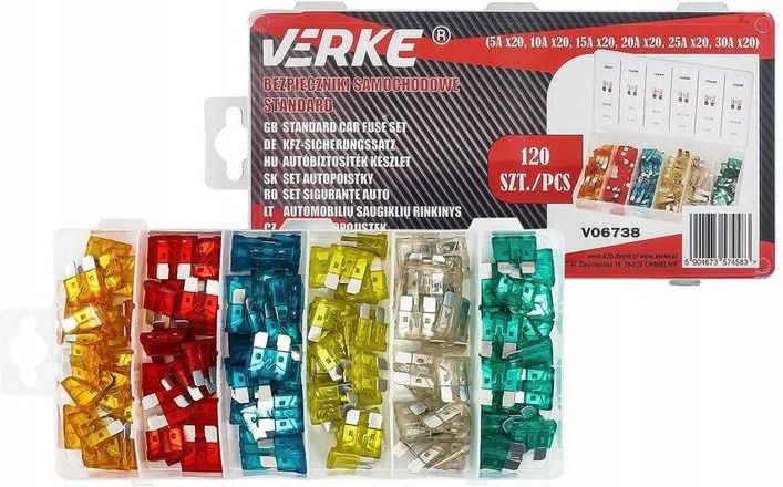 Verke V06738 Bezpieczniki Płytkowe 5A-30A 120szt. Białystok