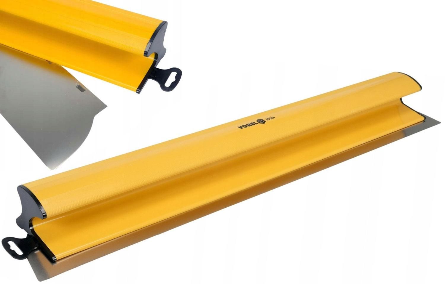 SZPACHLA DO GŁADZI 800 MM VOREL 06004 Szpachla tynkarska do precyzyjnego nakładania gładzi metodą suchą i mokrą na powierzchnie ścian i sufitów. Konstrukcja uchwytu pozwala na stosowanie wymiennych ostrzy. Parametry: szerokość robocza: 800 mm; wysokość części roboczej: 110 mm; grubość części roboczej: 0.3 mm; materiał części roboczej: stal nierdzewna 201; materiał rękojeści: PVC; elastyczny: tak; wymienne ostrze: tak; zastosowanie: do precyzyjnego szpachlowania powierzchni ścian i sufitów metodą suchą jak i mokrą; możliwość dokupienia ostrza wymiennego 06013. ZDJĘCIA PRODUKTU