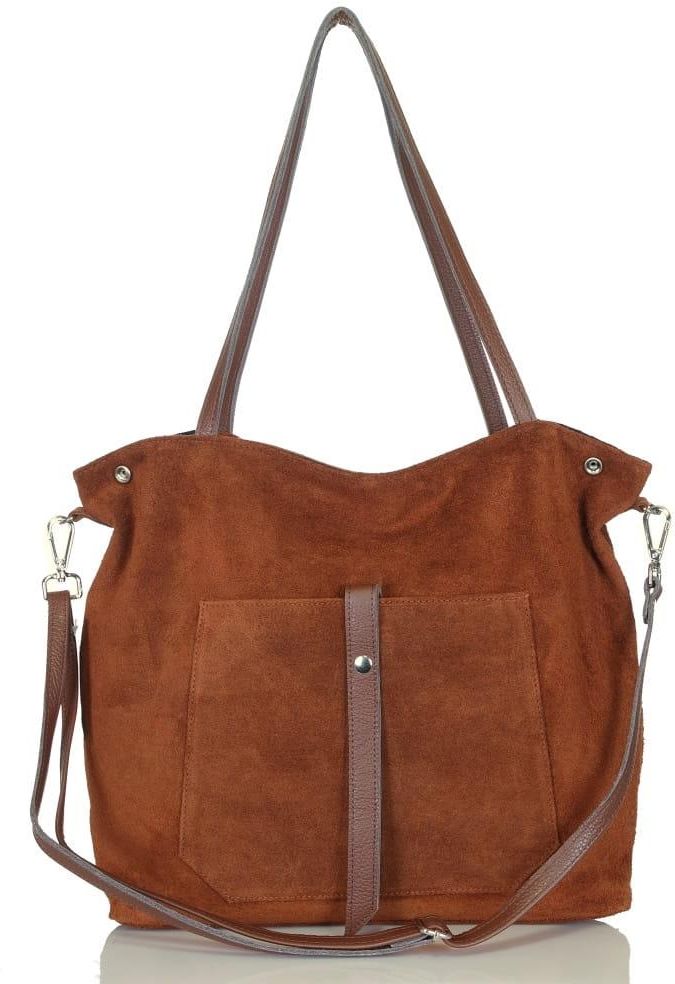 Włoski brązowy zamszowy shopper SKÓRA Białystok