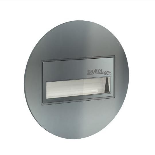 SONA wersja P/T 14V DC koło Oprawa oświetleniowa LED IP44 z ramką okrągłą SONA to wysokiej jakości oprawa LED o charakterze dekoracyjno-użytkowym. Znajduje zastosowanie przy oświetlaniu korytarzy, ciągów schodowych, dekoracyjnym podświetlaniu mebli oraz tworzeniu aranżacji świetlnych w architekturze wnętrz. Oprawa LED niewidoczny element emitujący światło opatentowany pryzmat kierunkujący promieniowanie świetlne idealnie płaska oprawa o grubości zaledwie 2 mm dostępne wersje: małogabarytowa oraz z podstawą kwadratową lub okrągłą wersja małogabarytowa dedykowana m. in. do podświetleń cokołów meblowych dostępność różnych wersji kolorystycznych korpusu i emitowanego światła Oprawa charakteryzuje się: łatwą instalacją za pomocą taśmy dwustronnej lub klejów montażowych stopniem ochrony IP44 co umożliwia jej montaż na zewnątrz pomieszczeń doskonałymi parametrami świetlnymi uzyskanymi poprzez zastosowanie diod LED najwyższej jakości firmy CREE powtarzalnością barwy światła dużym strumieniem świetlnym przy minimalnym poborze mocy wysoką jakością wykonania i trwałością szacowaną na 5 lat ciągłego świecenia (~40 000 h). UWAGA: Do zasilania opraw dedykowane są zasilacze firmy Zamel Ledix serii ZNP, ZNN oraz ZNM w wersji 14 V DC. Moc zasilacza powinna być dobrana do ilości zasilanych opraw. Oprawa z diodami RGB wymaga stosowania dodatkowego, zewnętrznego sterownika RGB - rekomenduje się stosowanie sterowników firmy Zamel LEDIX o symbolach SLR...