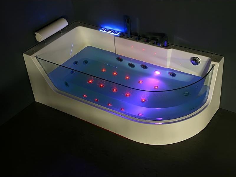 Wanna z hydromasażem water effect WYGINANA SZYBA CHROMOTERAPIA. Model: CL-3132 wersja prawa Producent: Zepehof Seria:  Eternity line Materiał wykonania: biały akryl sanitarny wykonany z jednego odlewu (brak łączeń poszczególnych elementów akrylu) Wymiar y: 1500mm * 750mm * 590mm Akcesoria: nogi regulowane usytuowane na stelażu kompletna bateria z przełącznikami funkcyjnymi korek spustowy z mechanizmem w ścianie wanny przewód odprowadzający wodę podświetlany panel sterowania funkcjami – elektroniczny dotykowy wężyki o stalowym splocie do przyłączeń wodnych wtyczka z przewodem elektrycznym 230V stalowa wylewka słuchawka prysznicowa wygodny zagłówek przykręcony do wanny Materiał wykonania: Akryl sanitarny czterowarstwowy biały firmy Reme o grubości od 3mm-4.5mm, wzmocniony od spodu włóknem szklanym i żywicą o grubości 10mm-15mm. Akryl jest odporny przed uszkodzeniami i zarysowaniem. Armatura wykonana z stali chromowanej. Przednia szyba wyginana, hartowana o grubości 10mm osadzona w akrylu. Akryl jest odporny przed uszkodzeniami i zarysowaniem. Armatura wykonana z stali chromowanej. Powierzchnia akrylu odporna na promienie UV i utracenie połysku. Akryl jest bialutki bez zbędnych domieszek mas plastycznych ABS itp.., powłoka antybakteryjna, odporna ma matowienie pod wpływem czynników zewnętrznych. Higieniczna wanna wyposażona w ozonowanie ANTIBACTERIAL FORMULA Skuteczne przeciwdziałanie namnażaniu bakterii i grzybów. .lnd_object .lnd_text .lnd_content { font-size: 1em; } Przekrój zastosowanych rur wielowarstwowych do hydromasaży HEROTEC. Opis funkcji: masaż wodny (3 duże + 3 małe dysze w ścianie wanny), pompa wodna ze zwrotnicą o mocy 1.0HP regulator siły dopowietrzania masażu wodnego, masaż powietrzny (10 Eurodysz silikonowych LED)Nowość, pompa powietrzna o mocy 350W funkcja kąpieli ozonowej elektroniczny efektownie podświetlany panel sterowania (sterowanie: masaż, radio, oświetlenie, ozon itd.) Uwaga: dysze płaskie w dnie wanny. Nic nie uwiera podczas kąpieli. wyposażona w modyfikację powierzchni szkła Glass Protect (specjalna powłoka dzięki której na powierzchni szkła nie osadza się tyle nalotu co na tradycyjnym szkle, a krople wody mają większą koncentrację) dysze wodne typu LED 7 kolorów dezynfekcja ozonowa (sterowana z panela) radio FM oświetlenie w ścianie wanny, chromoterapia (siedem kolorów: czerwony, zielony, niebieski,pomarańczowy, żółty, biały, fioletowy) korek odpływowy z mechanizmem w ścianie wanny + przewód odpływowy wbudowany głośnik zewnętrzny nowoczesna słuchawka prysznicowa z wężykiem powłoka antypoślizgowa: Pro Safe System