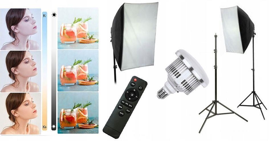 Zestaw 5w1 LAMPA LED 200W 3000-6500K + Pilot Softbox 50x70cm Statyw 230cm / LED803 Białystok