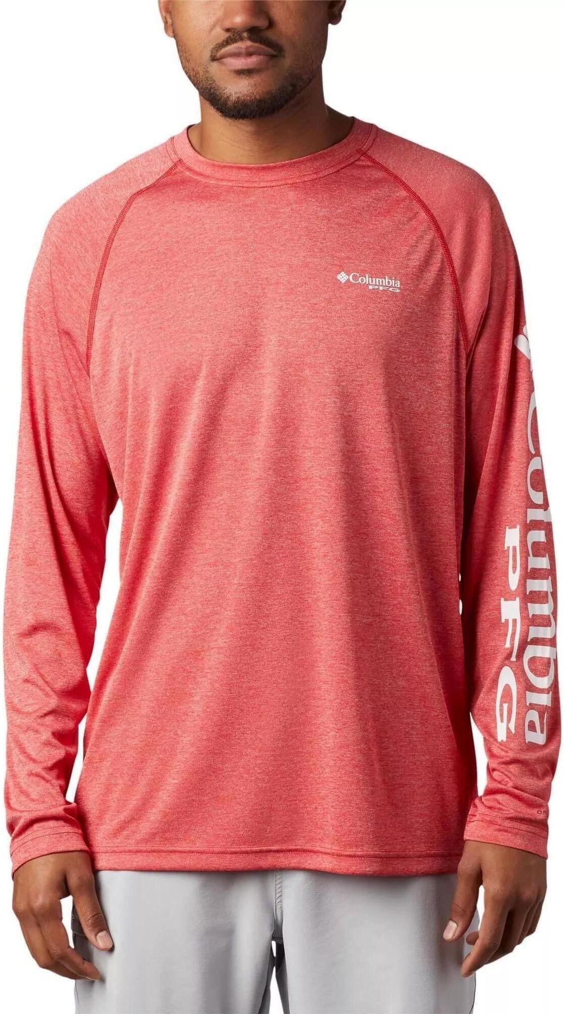 Columbia Koszulka Sportowa Męska Terminal Tackle Heather Ls Z Długim Rękawem Czerwone Biecz