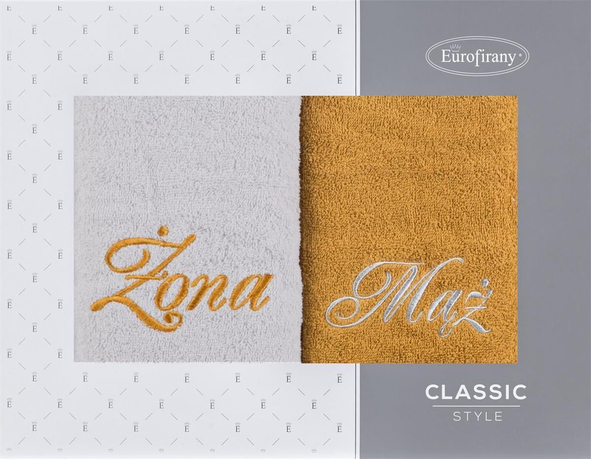 Eurofirany Komplet Ręczników W Pudełku 2Szt. 70X140 Mąż Żona Srebrny Musztardowy Biecz