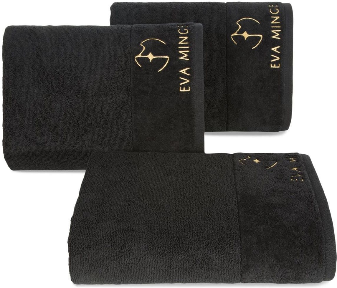 Eurofirany Ręcznik Bawełniany Z Welurową Bordiurą I Haftem Eva Minge 70X140 Czarny Biecz